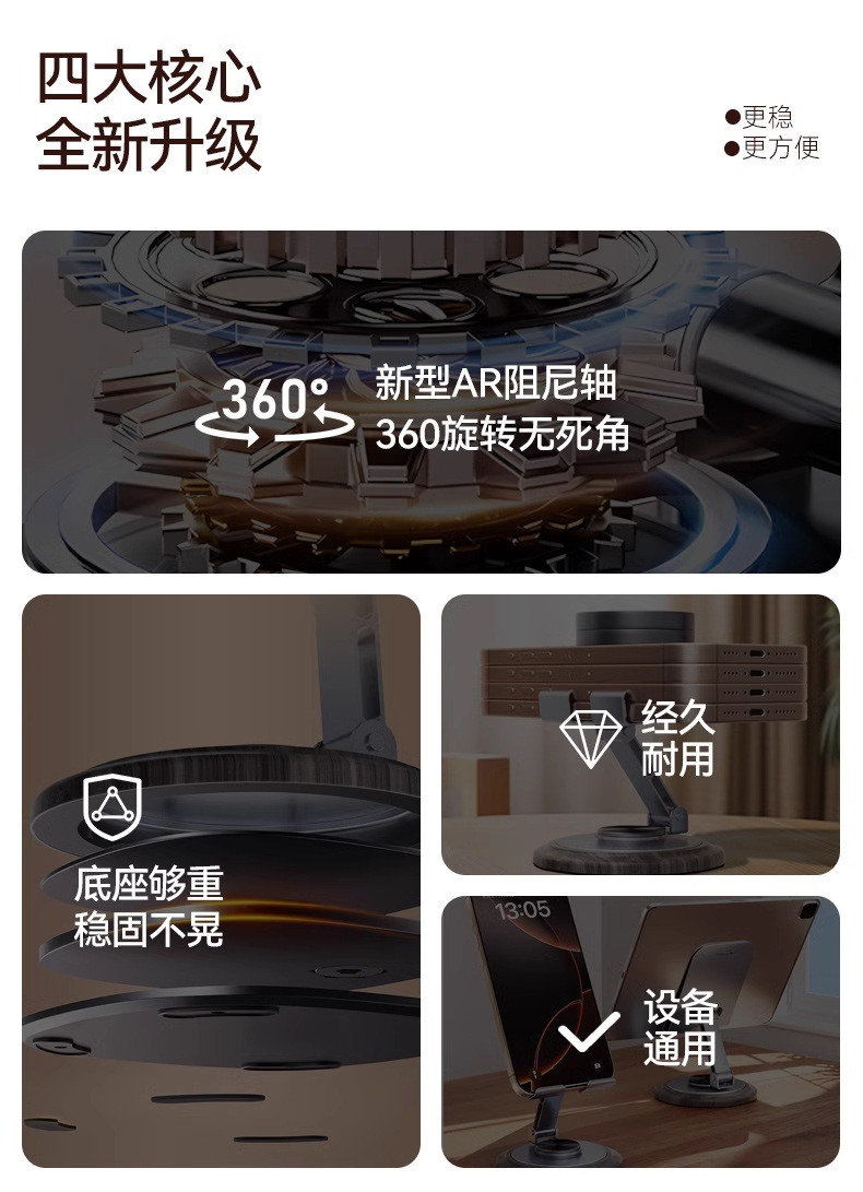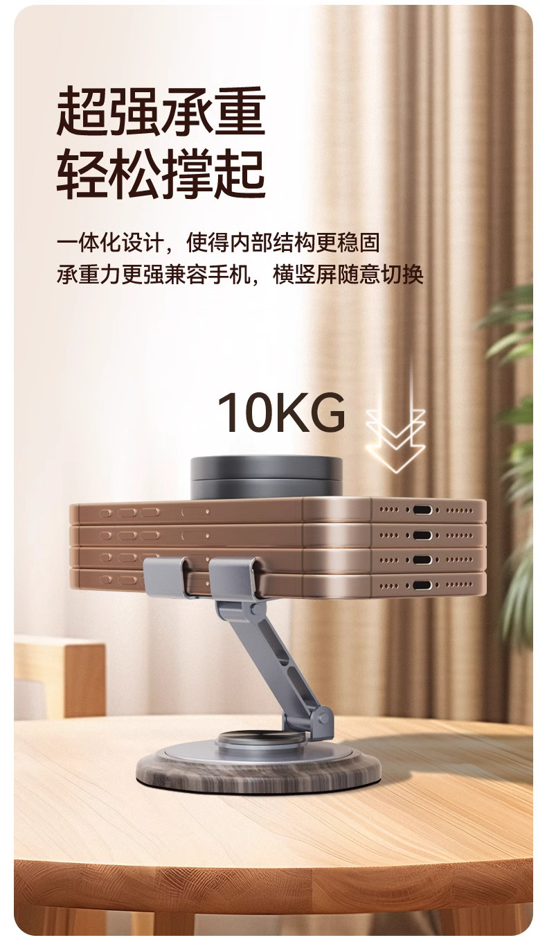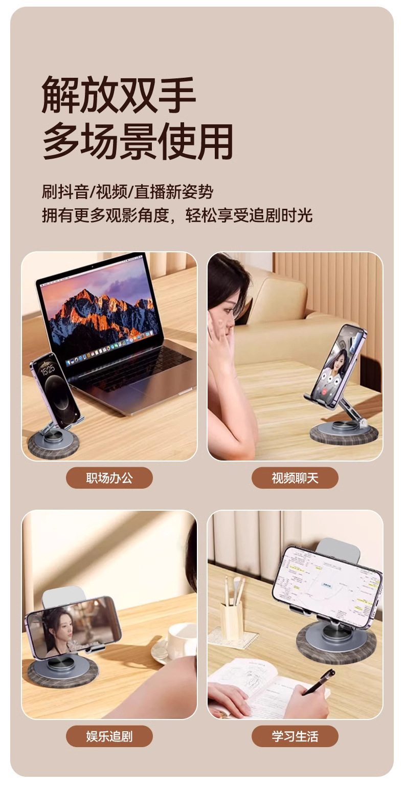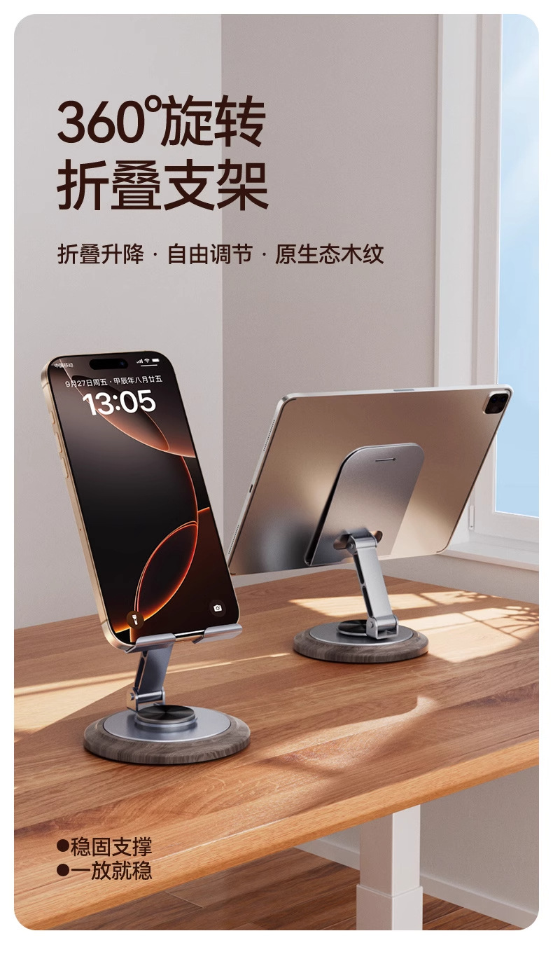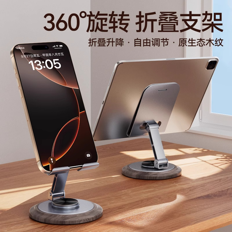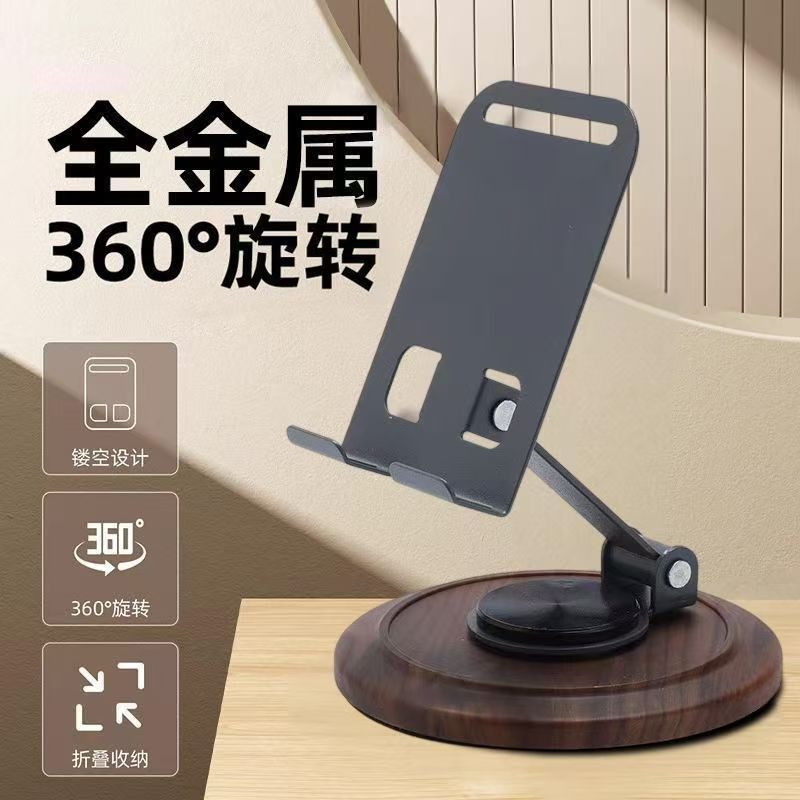 新款木纹金属旋转手机支架桌面懒人折叠追剧直播办公平板通用便携