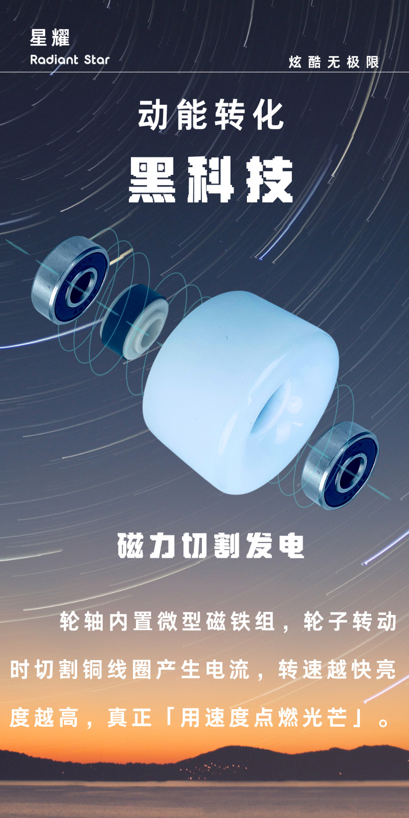 発电ホイール自発电新品スケートボード用10030PU発电ホイール85APU 82APU発光ホイール