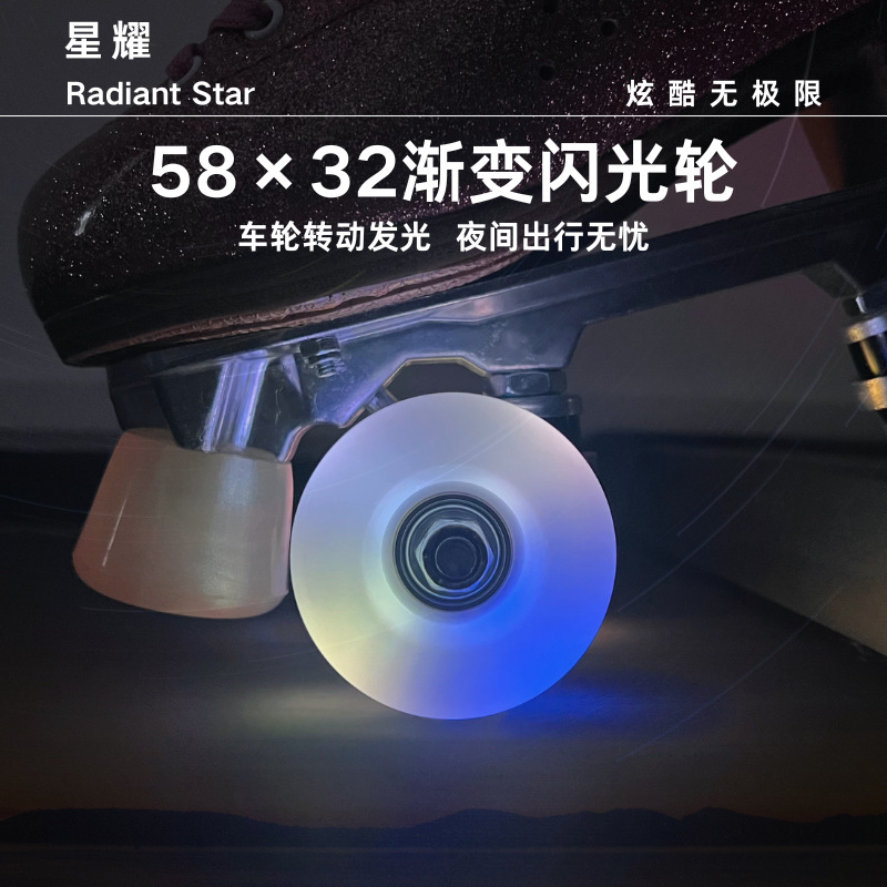 4つのライト付き複列ローラースケート、色が変わるホイール、4輪ローラースケート、発光ホイール、LEDライト、グラデーショングリッターホイール