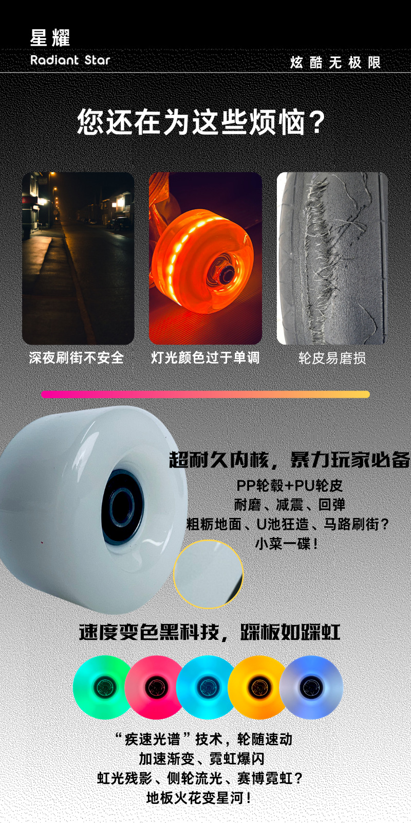発电ホイール自発电新品スケートボード用8040PU発电ホイール85APU 82APU発光ホイール