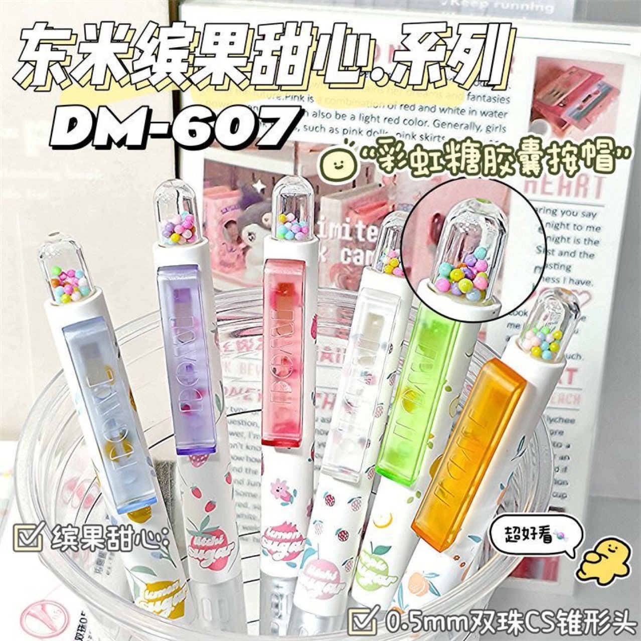 东米新品607缤果甜心双珠CS速干按动中性笔可爱高颜值0.5mm黑笔