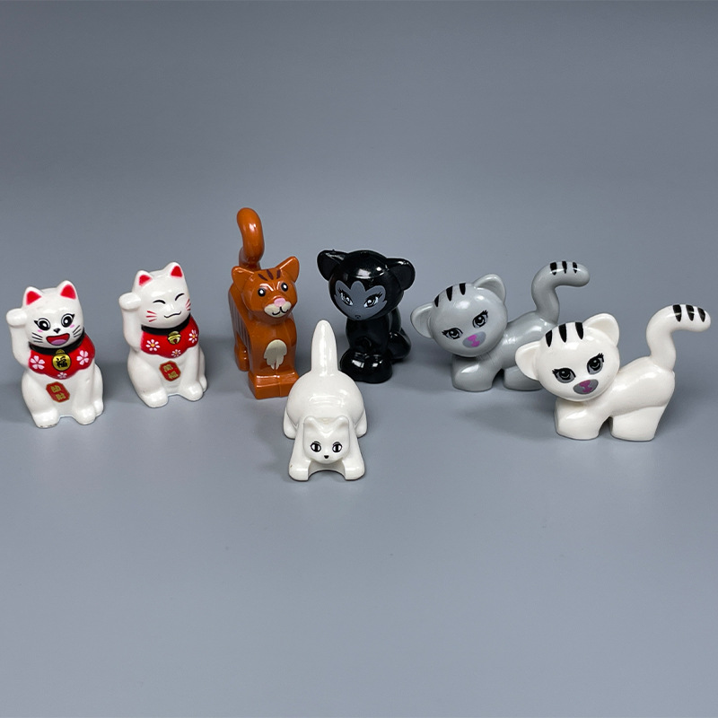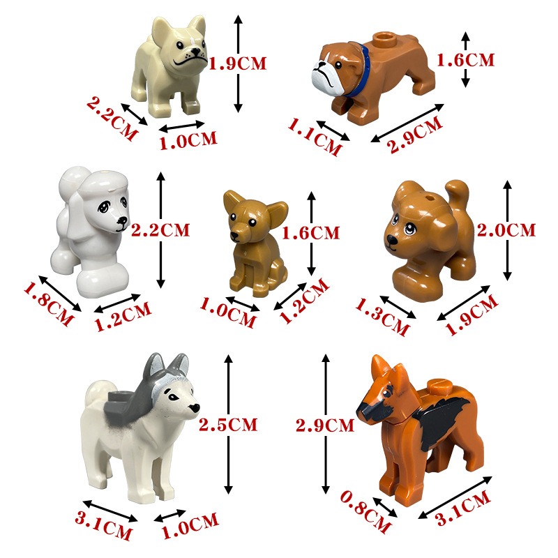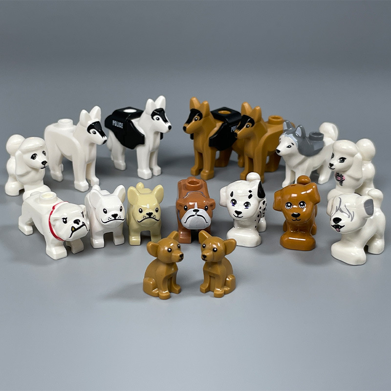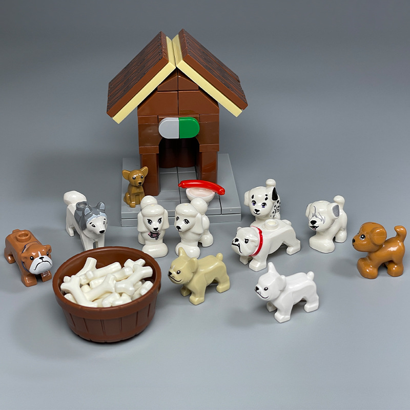 国産の小粒の積み木のおもちゃの動物の部品の人の子のペットの子猫の子犬の警察の犬の家を代行します。