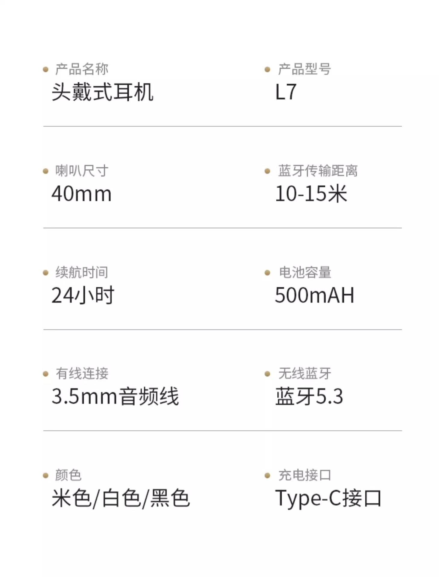 ベージュモデル L7 [Bluetooth 5.3+40mm ムービングコイル+500mAh リチウムバッテリー],ホワイトモデル L7 [Bluetooth 5.3+40mm ムービングコイル+500mAh リチウムバッテリー],ブラック L7 [Bluetooth 5.3+40mm ムービングコイル+500mAh リチウムバッテリー]