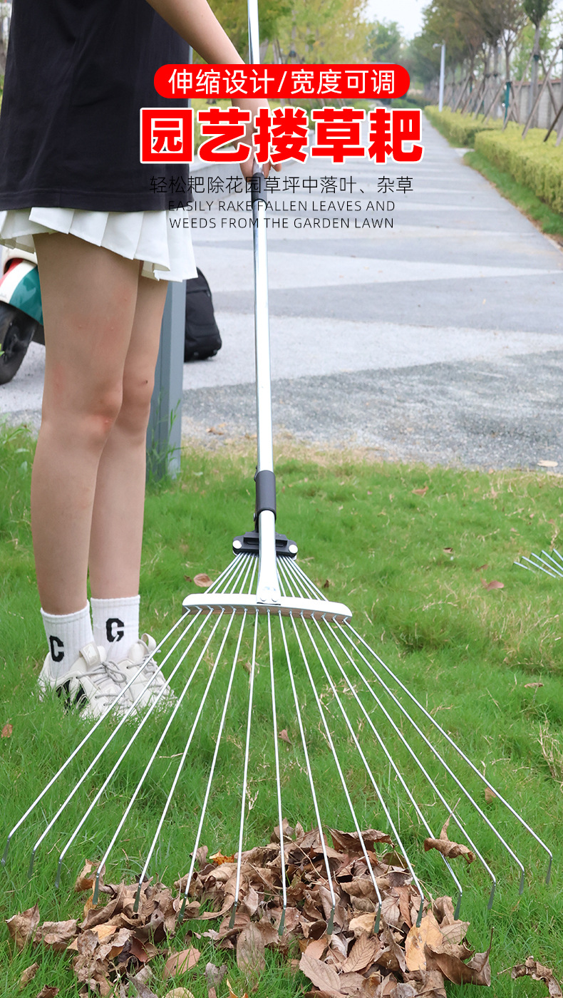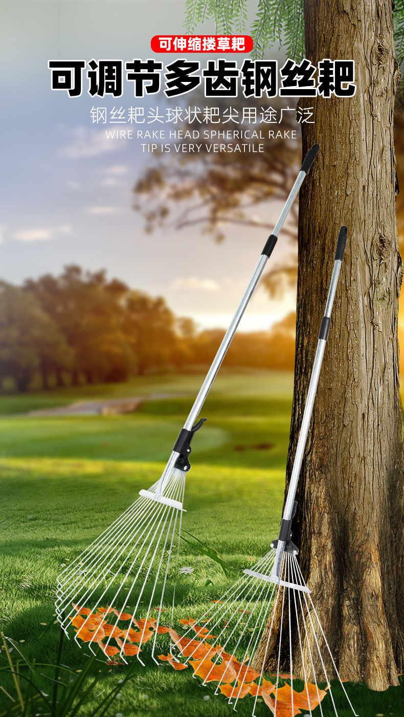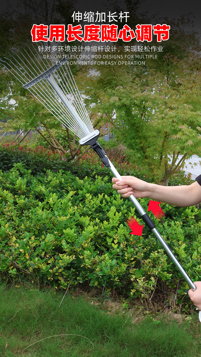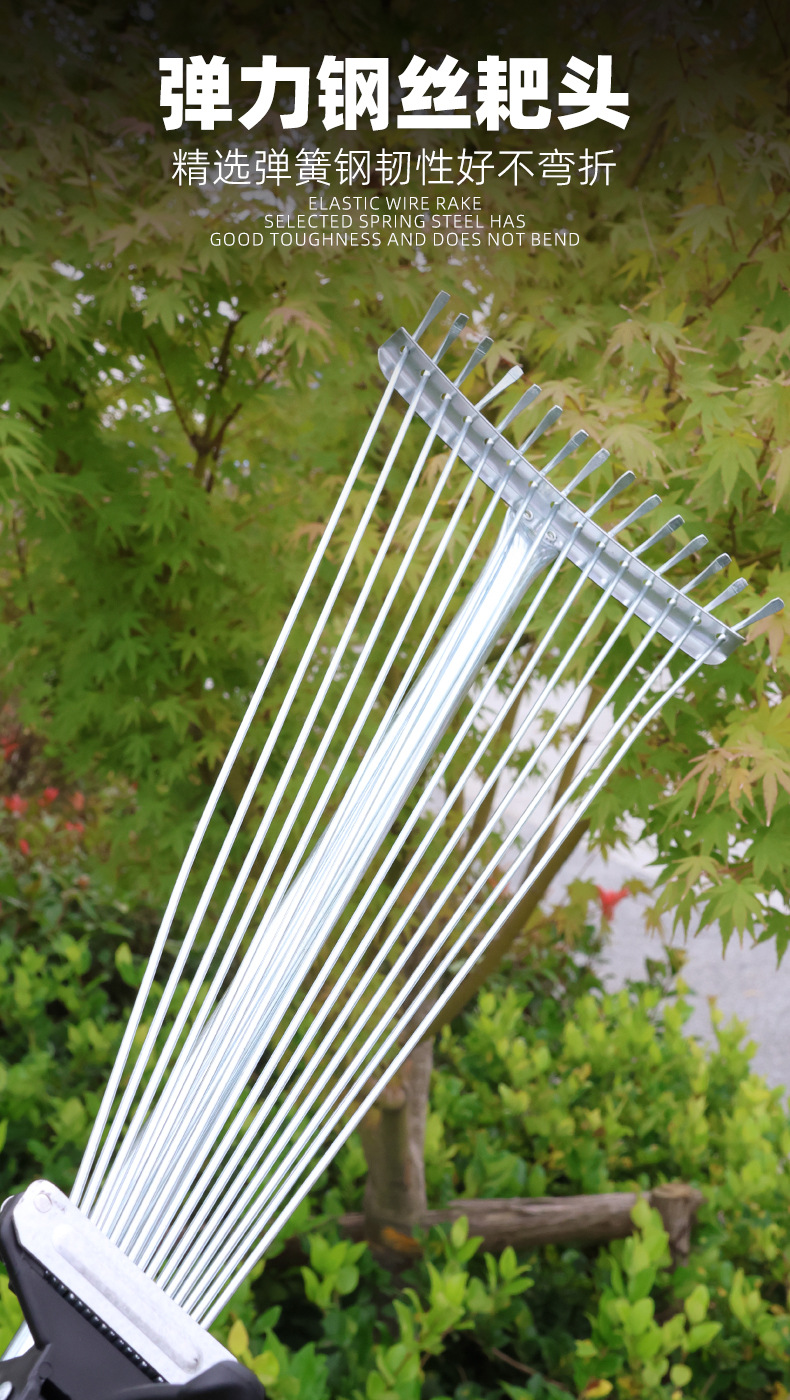 園林農業用落葉鉄熊手家庭用伸縮草熊手農具抱草多歯鋼線調節可能神器鉄熊手