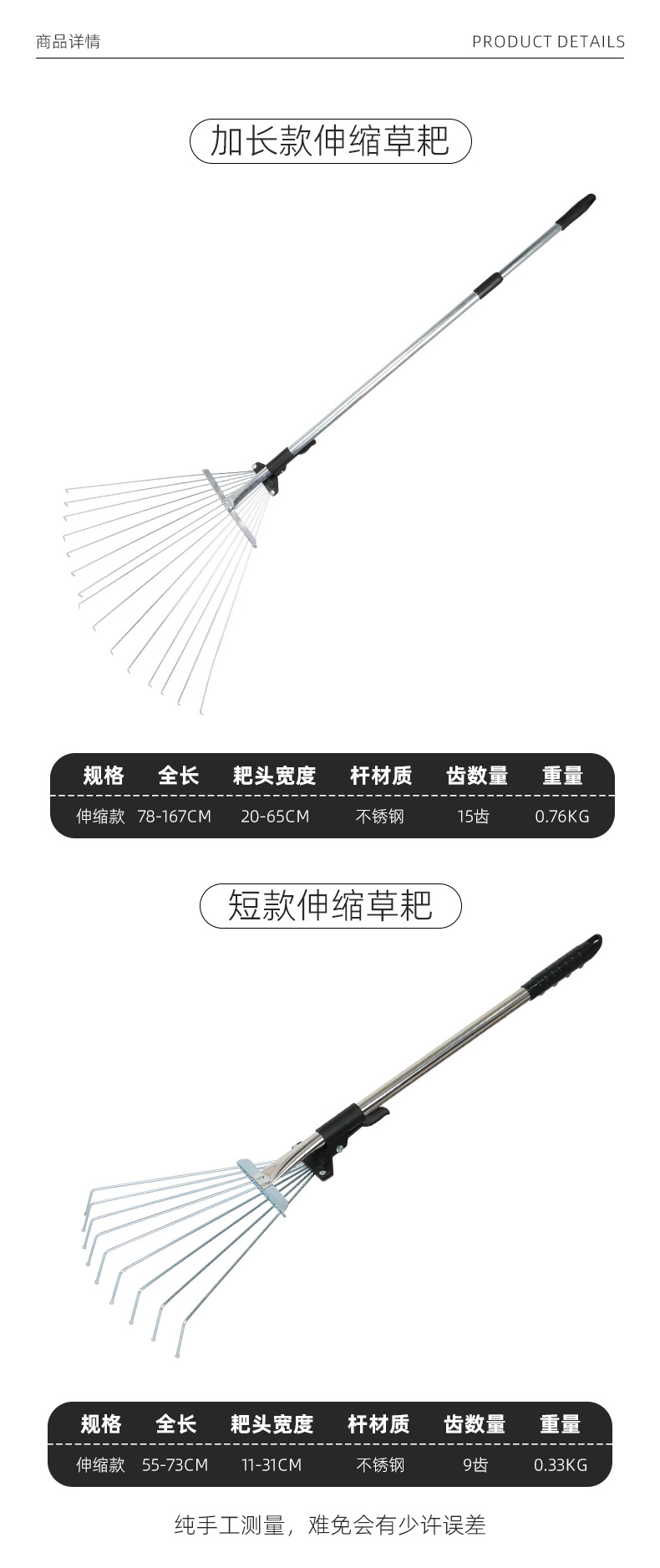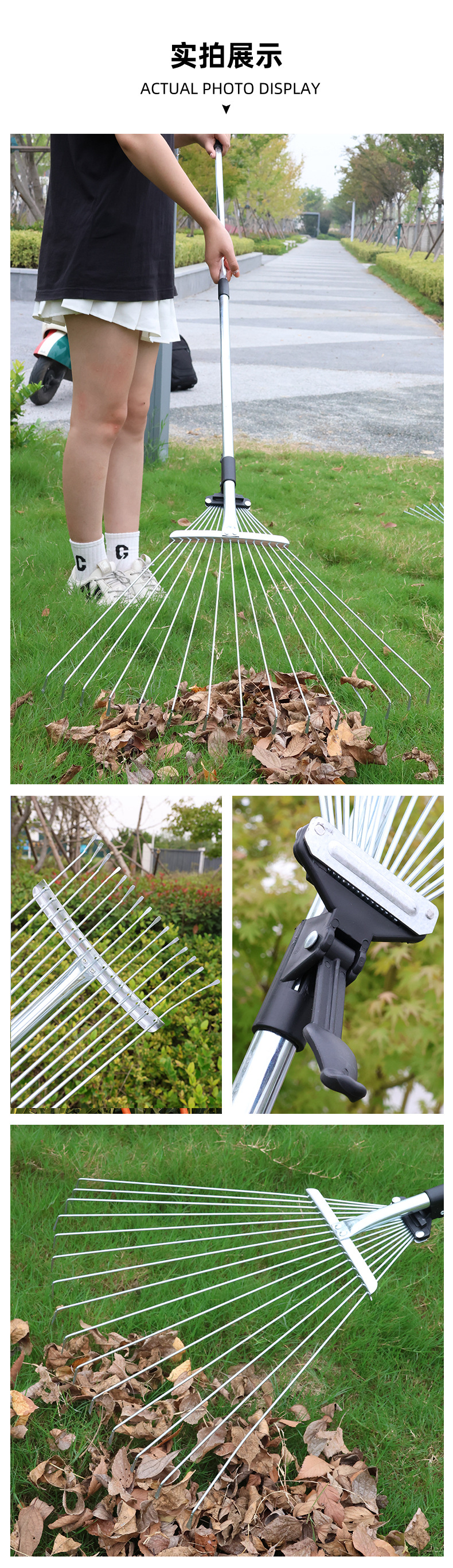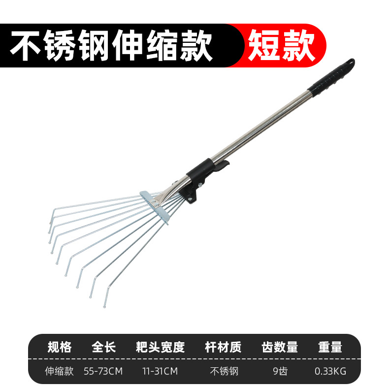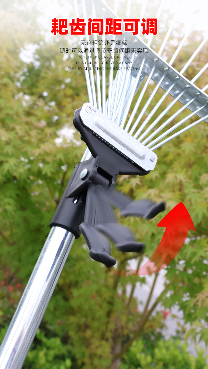 園林農業用落葉鉄熊手家庭用伸縮草熊手農具抱草多歯鋼線調節可能神器鉄熊手