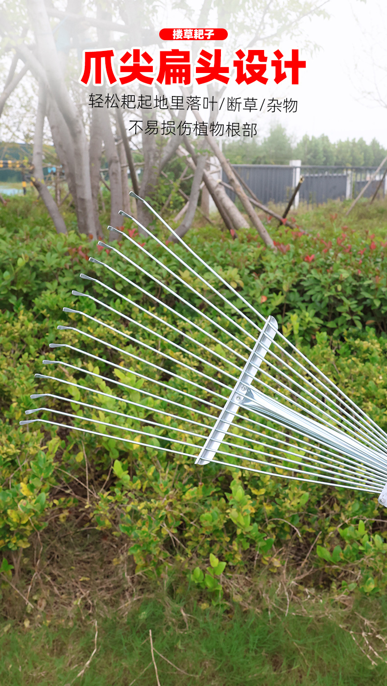 美科搂草耙子扫树叶神器草坪铁爪子农具耙尺落叶钉耙扫把伸缩扒子