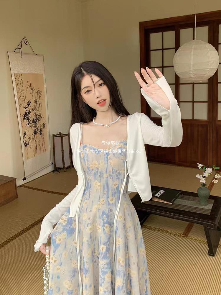 13ラインの新しい夏のスタイルの新鮮で甘いシフォン花柄ドレスハイエンドスカート婦人服卸売供給