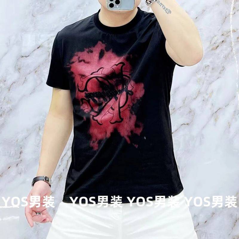 60023-2025 夏新作ヨーロッパ版ラウンドネック半袖 Tシャツメンズトレンディなファッション通気性シャツ