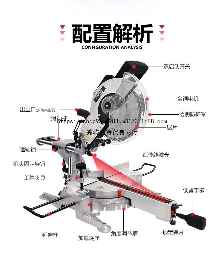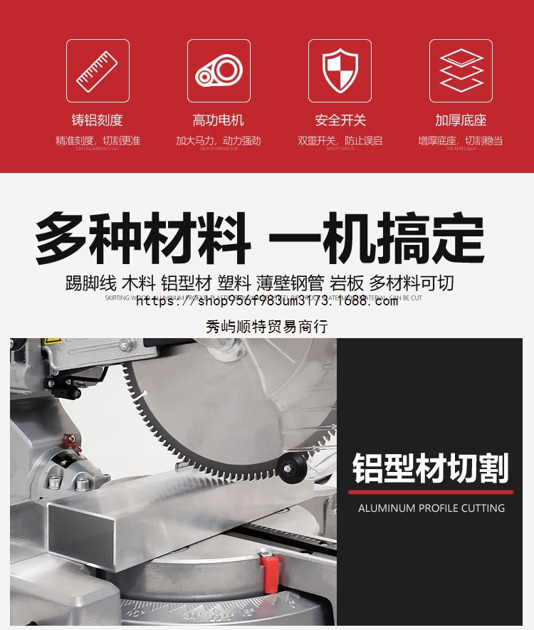 10inch 12inch 木工レバーレーザーポジショニングプロファイル切断機アルミマシンアルミ合金多機能鋸斜め切断鋸