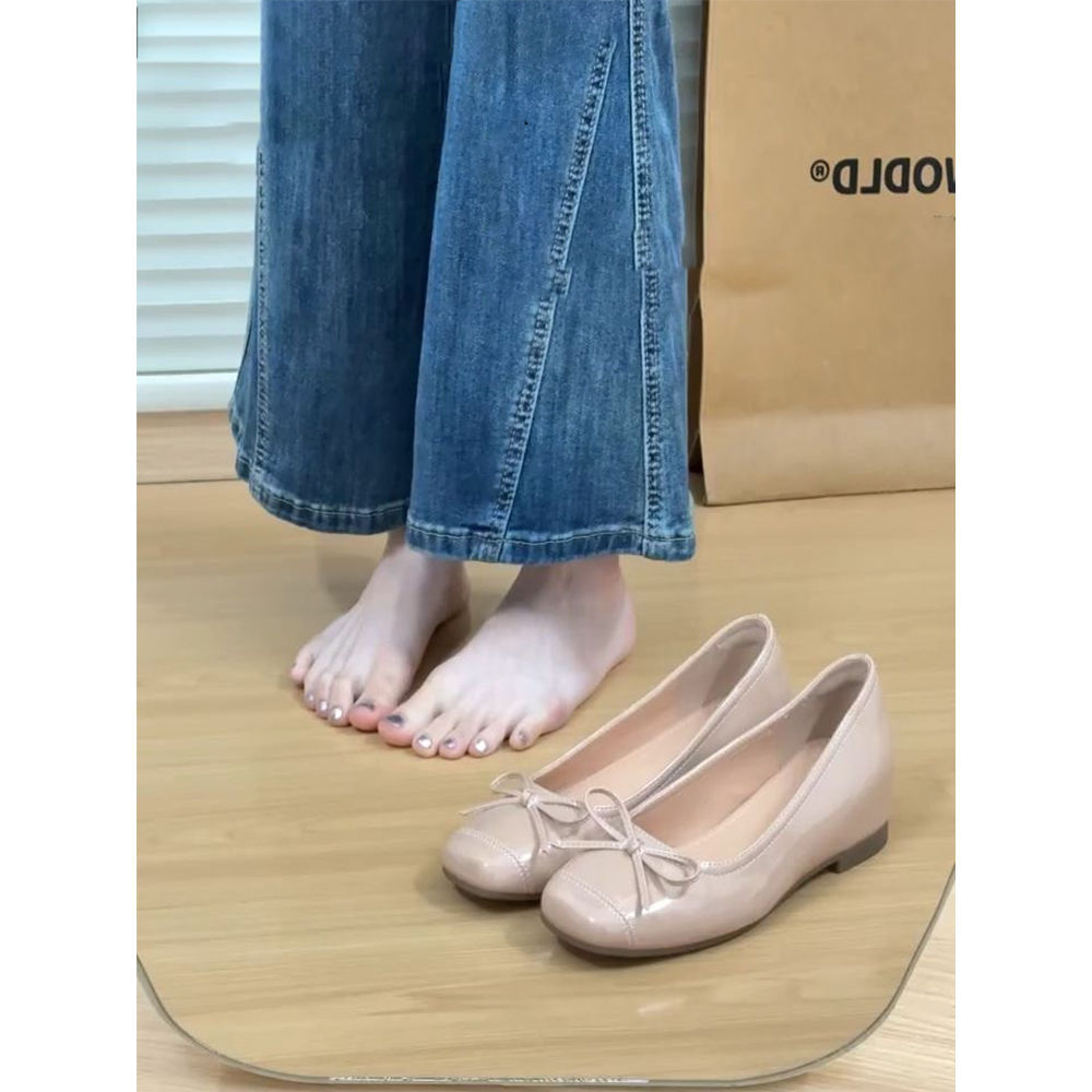 浅口の靴の女性2025春秋の新型の蝶結びの優しい方の頭のおばあさんのフランス式の靴の通勤のハイヒールの潮