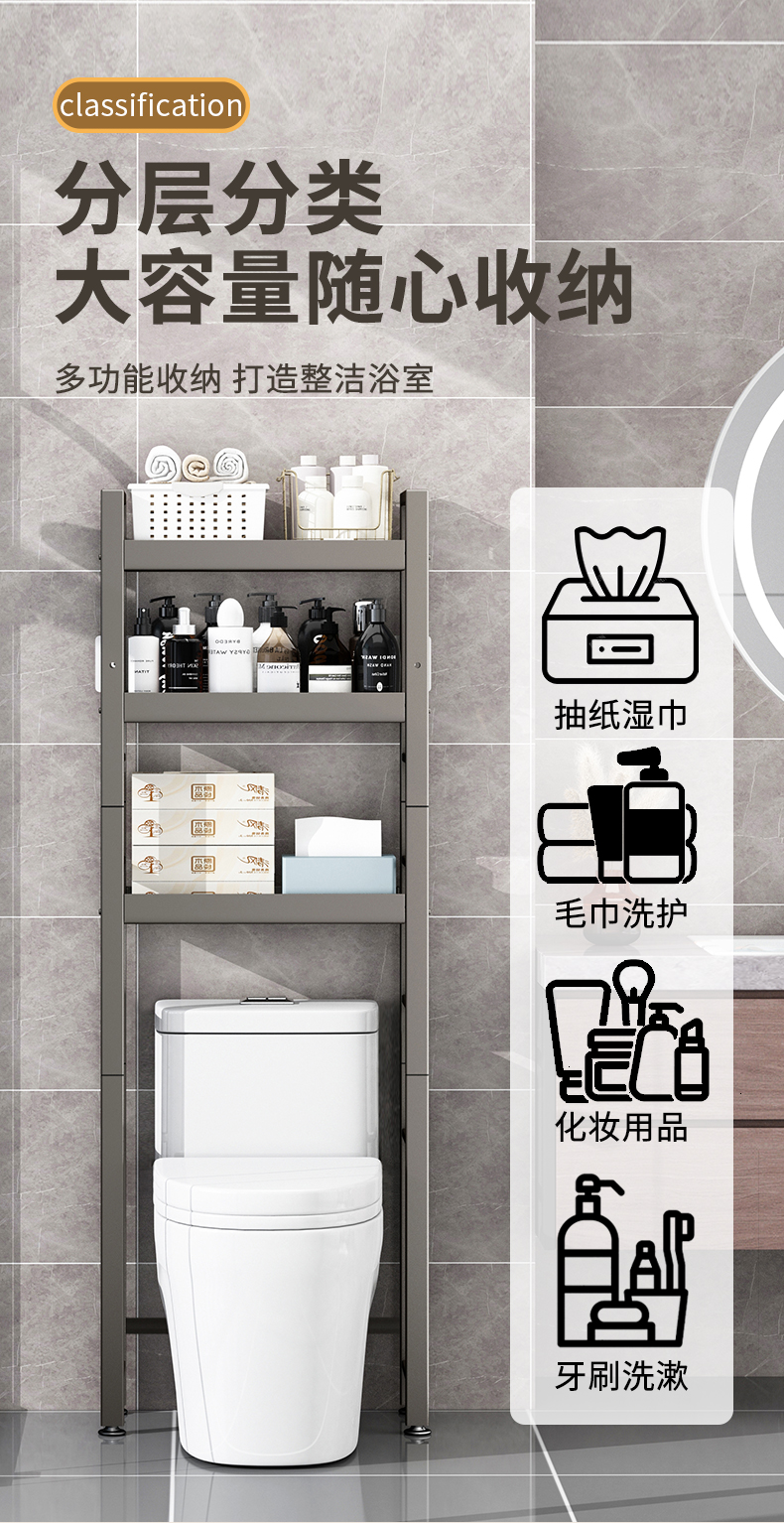 ✅ バスルームバスルーム収納ラック床置き多層トイレスマート水タンク上ラックバスルームトイレ収納