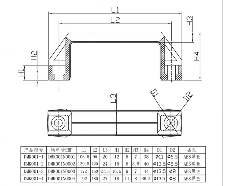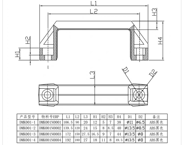 小包dmk 001厚いプラスチック黒色取っ手配電箱ドアスイッチ明装式取っ手アルミ合金取っ手