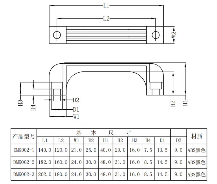 加厚塑料把手机械工业柜门开关尼龙拉手方形明装式铝合金设备提手