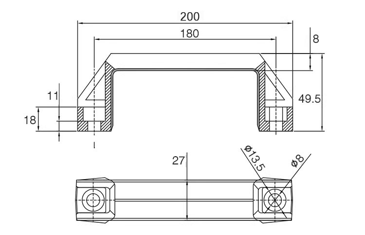 ナイロンプラスチック取っ手ケース工業キャビネットドアスイッチ取っ手は亜鉛合金角形明装式設備取っ手を厚くした
