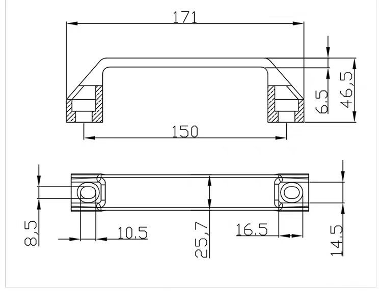 厚いプラスチック黒明装取っ手/キャビネットドア取っ手/明装工業設備取っ手/工具箱取っ手