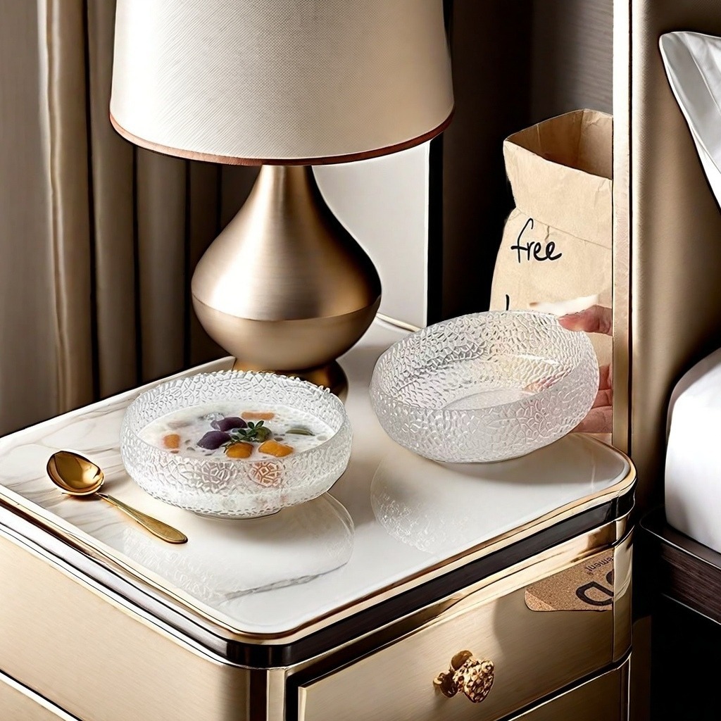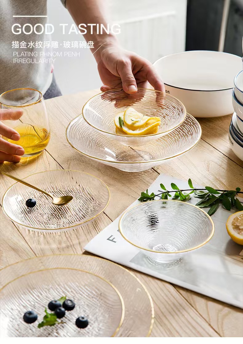 日本式プノンペン横紋ガラス碗皿セット創意フルーツサラダ透明碗皿食器洋食皿夢皿