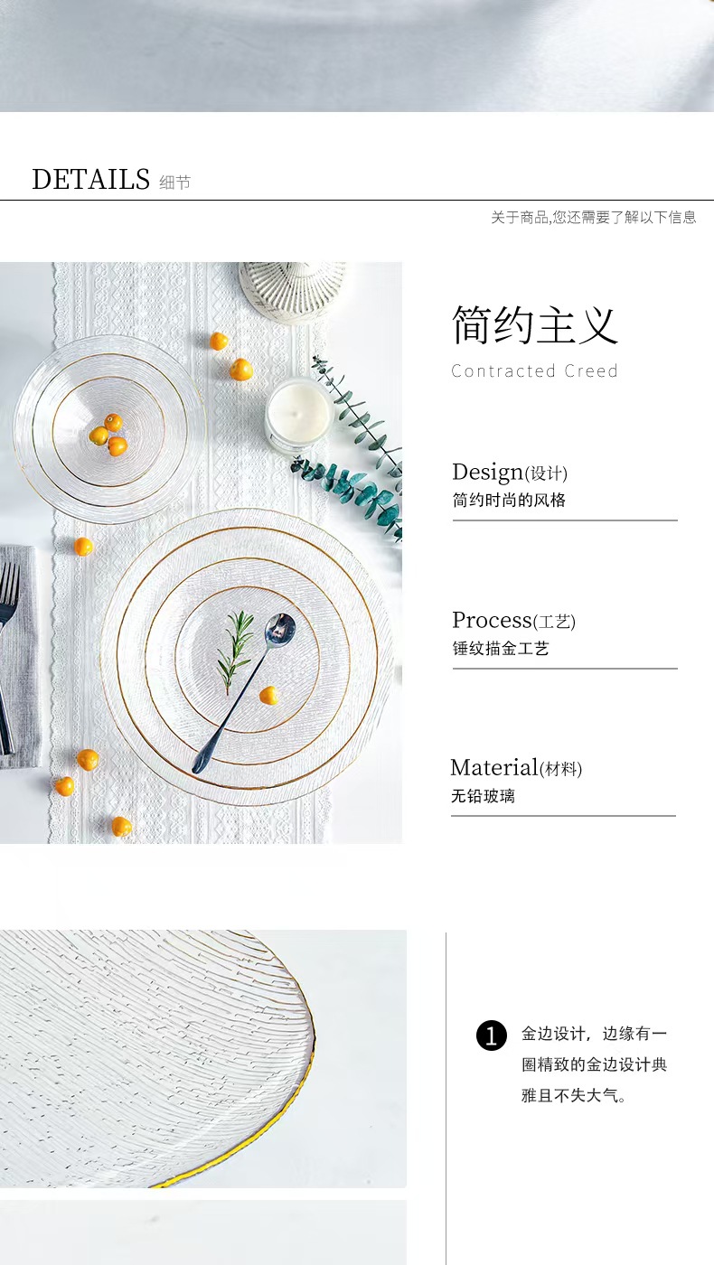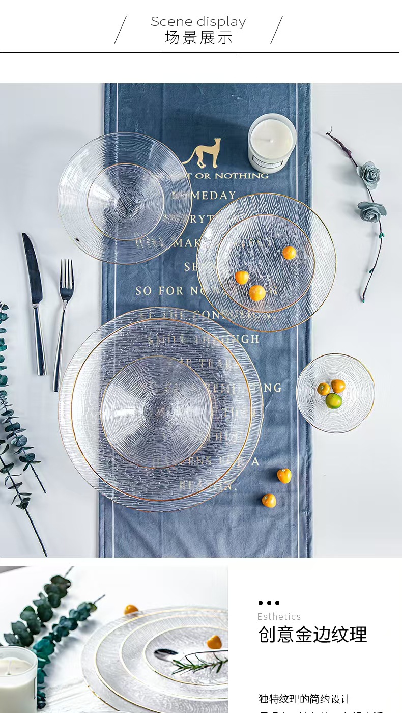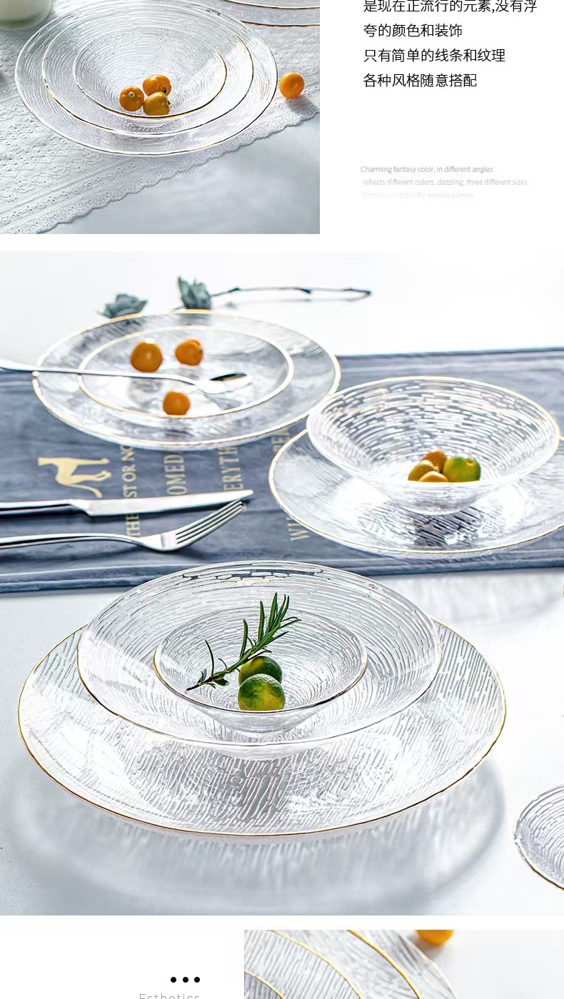 日本式横紋ガラス皿高颜値家庭用果物皿洋食皿サラダ皿皿高級感装飾品
