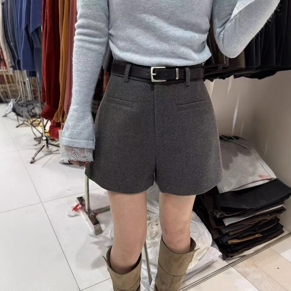 毛呢短裤女2025新款秋冬季高腰时尚呢子爆款外穿字阔腿休闲靴裤