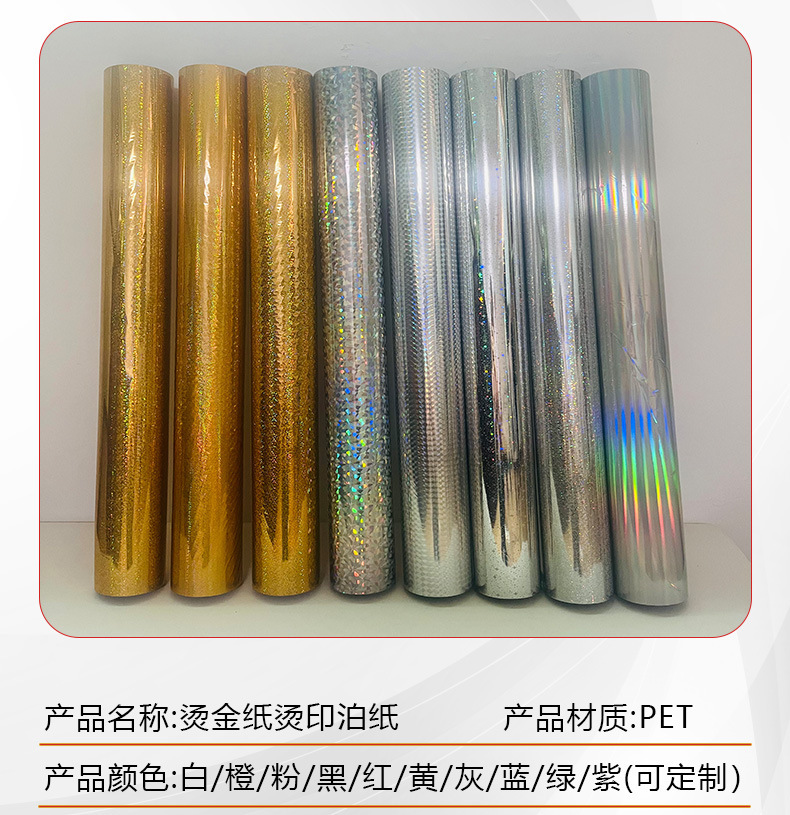 uv水晶标烫金纸定制金色彩色镭射数码冷烫转印烫金膜包装盒金箔纸