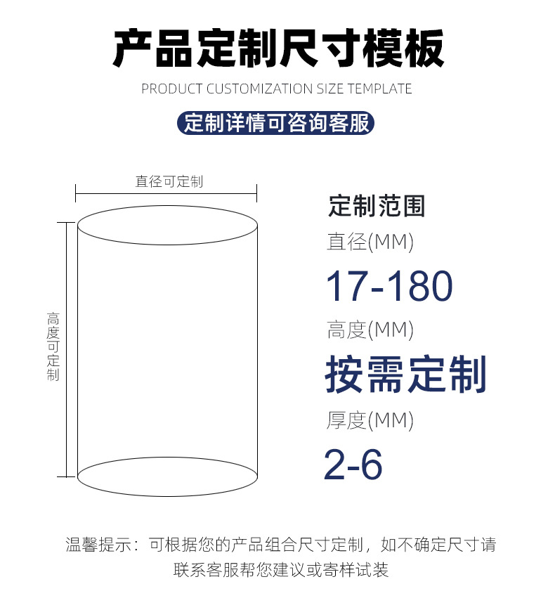 仕様とモデル 内径 30 MM [厚さ 3MM]; デフォルト 1m,内径 40 MM [厚さ 3MM]; デフォルト 1m,内径 45 MM [厚さ 3MM]; デフォルト 1m,内径 50 MM [厚さ 3MM]; デフォルト 1m,内径 55 MM [厚さ 3MM]; デフォルト 1m,内径 60 MM [厚さ 3MM]; デフォルト 1m,内径 70 MM [厚さ 3MM]; デフォルト 1m,内径 75 MM [厚さ 3MM]; デフォルト 1m,他の長さ/内径/厚さのカスタマイズについては、カスタマーサービスにご相談ください; デフォルトは 1m