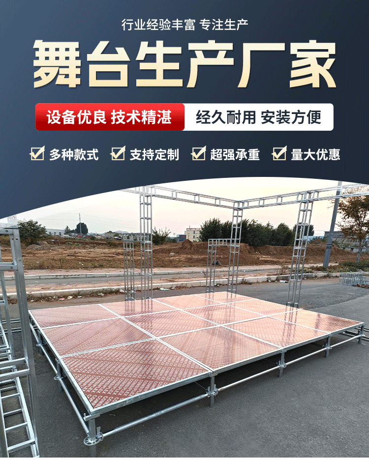 雷亚镀锌管钢舞台架拼装户外演出快装升降桁架舞台婚庆加厚舞台板