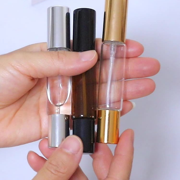 人気のデュアルユース双頭ボールスプレーボトル円筒形香水詰め替えボトル旅行ポータブル化粧品透明ガラスボトル