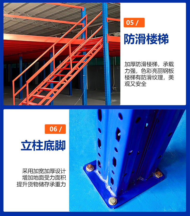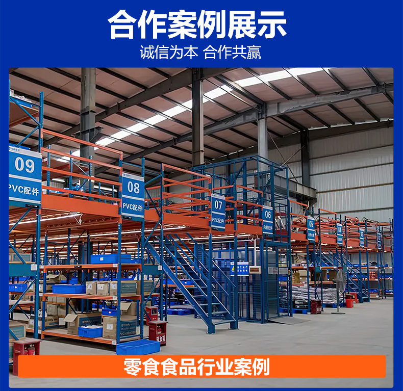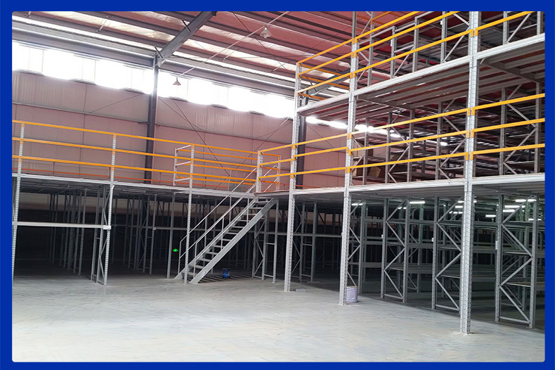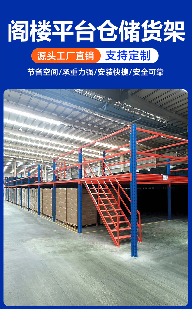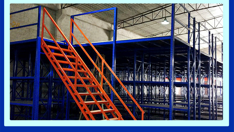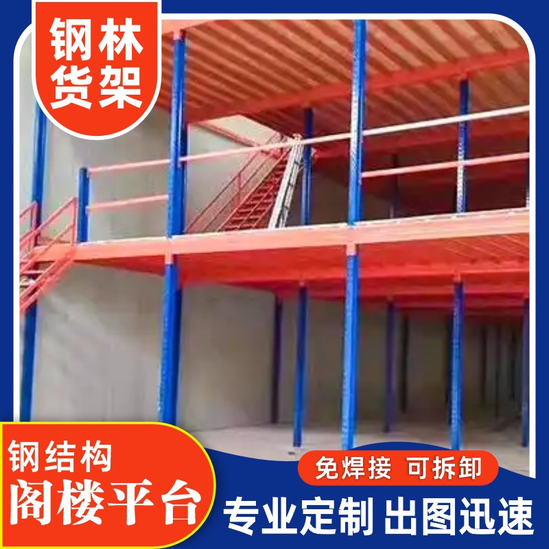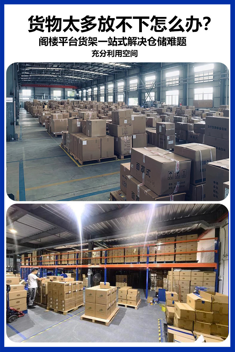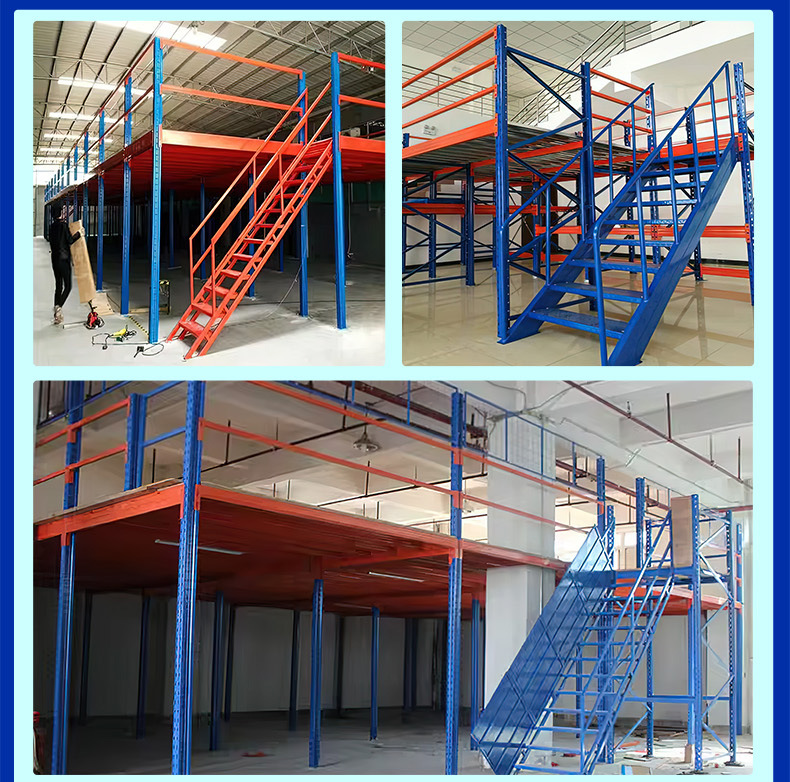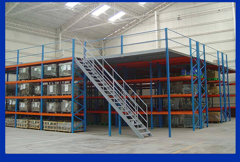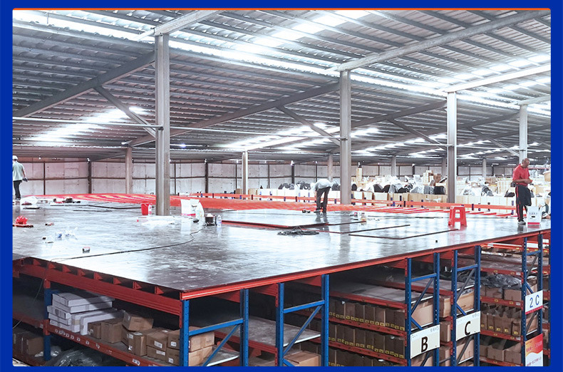 ロフトプラットフォームは、倉庫の二階層に棚を設置し、スチール製の棚板を使用し、保管棚は分解・組み立てが可能で、溶接は不要です。