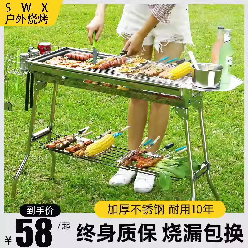 拡張バーベキューグリル屋外折りたたみポータブル家庭用小型カーボングリルバーベキューグリルネットステンレス鋼メッシュストーブ