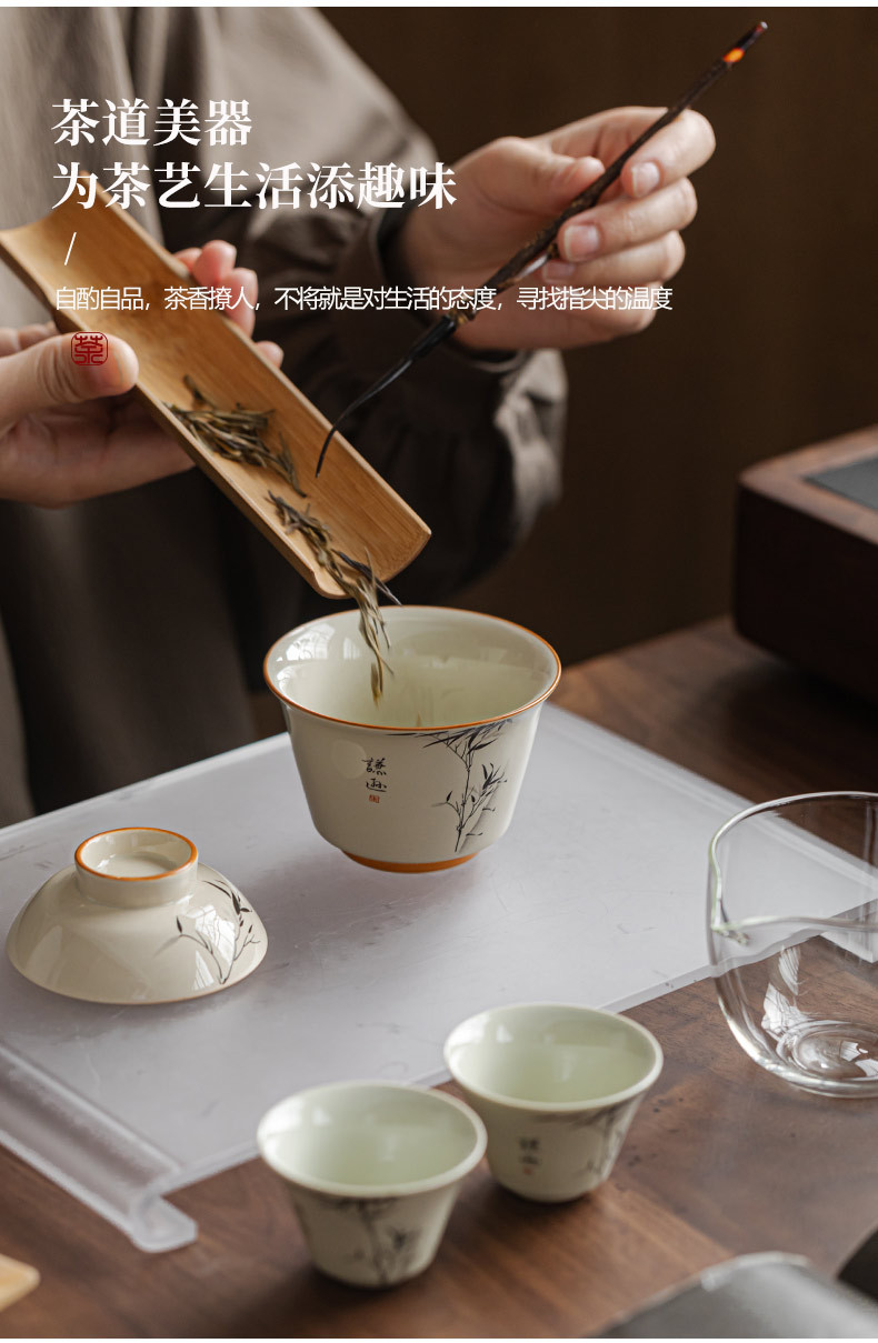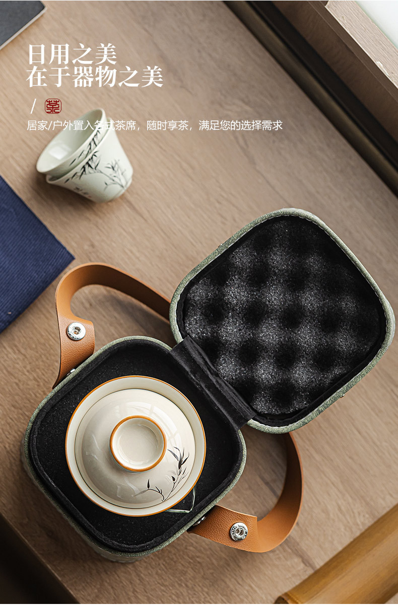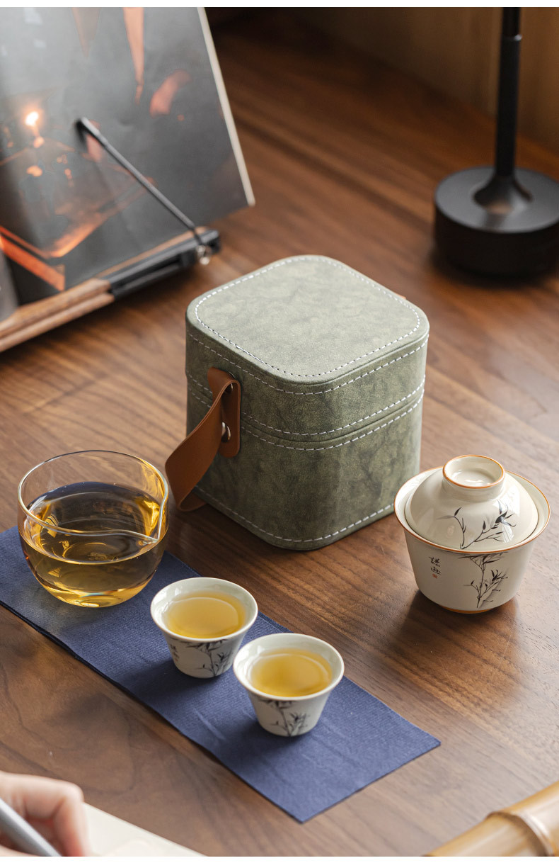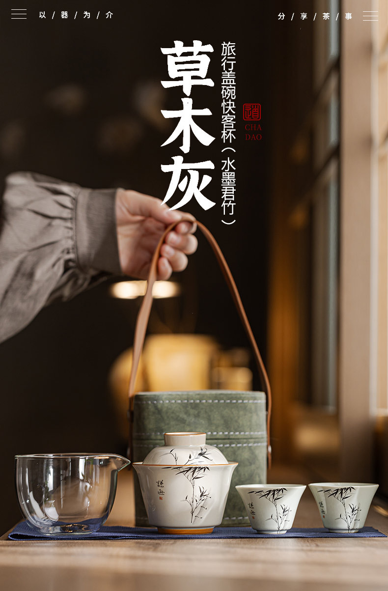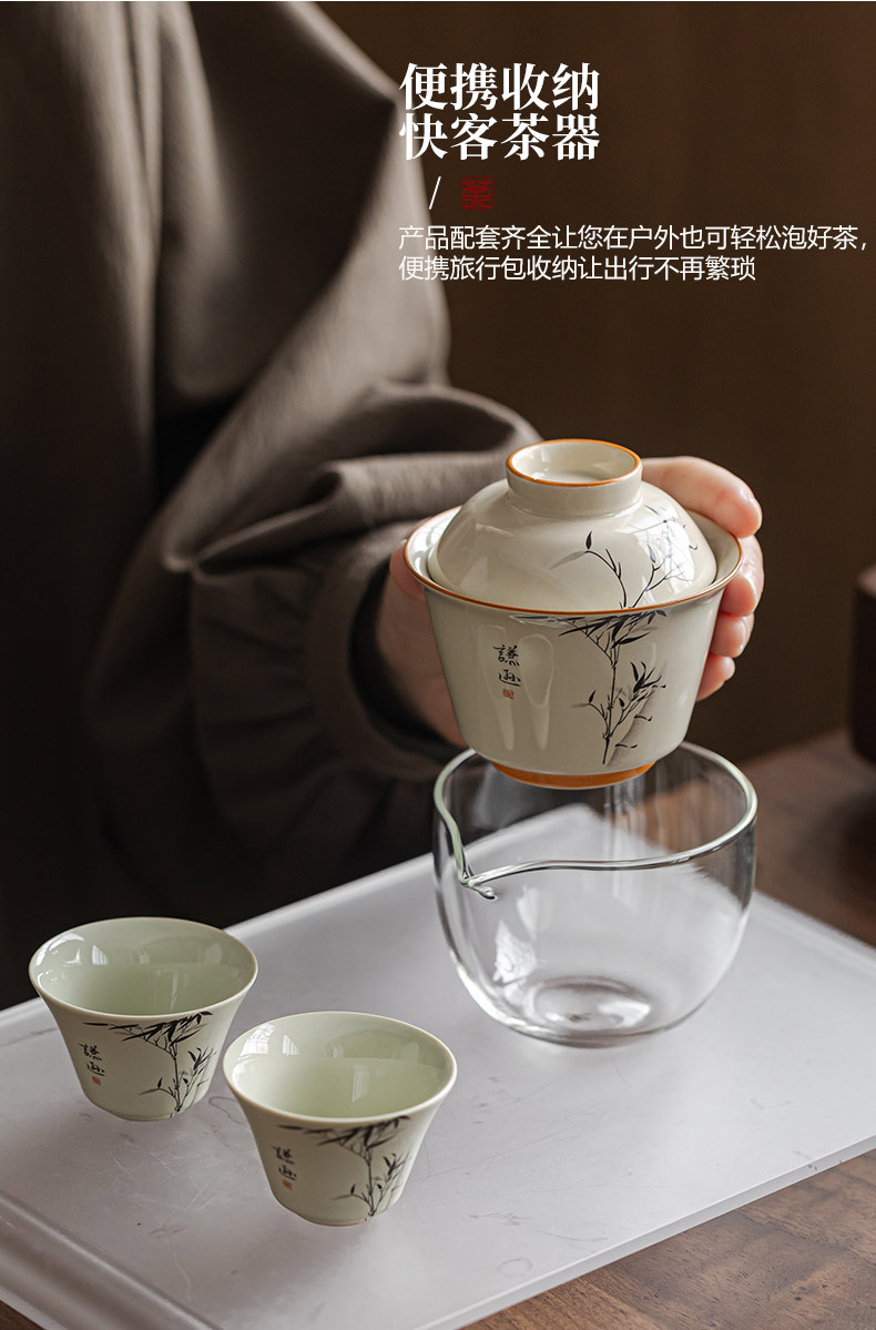 草木灰水墨君竹旅行快客杯携帯型茶器陶磁器は屋外でお茶を入れてプレゼントします。