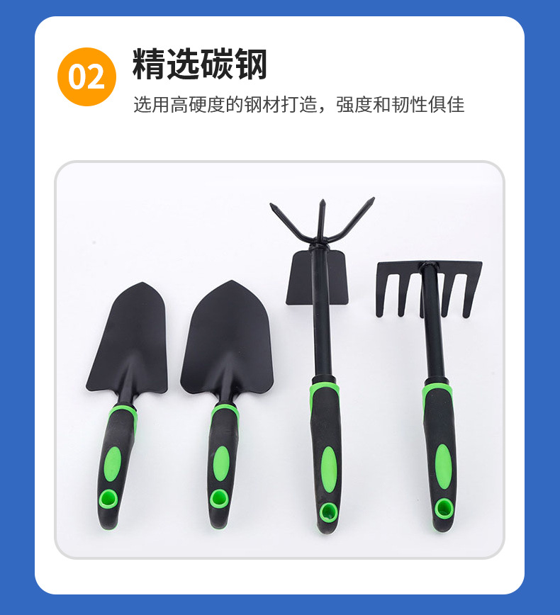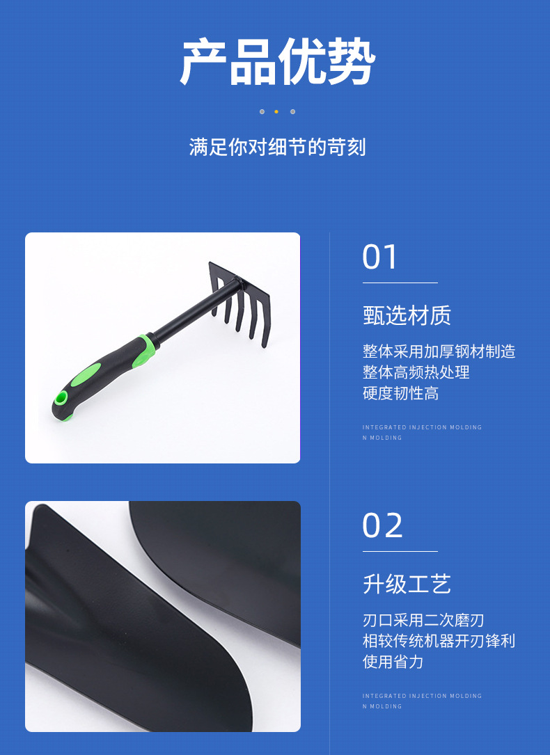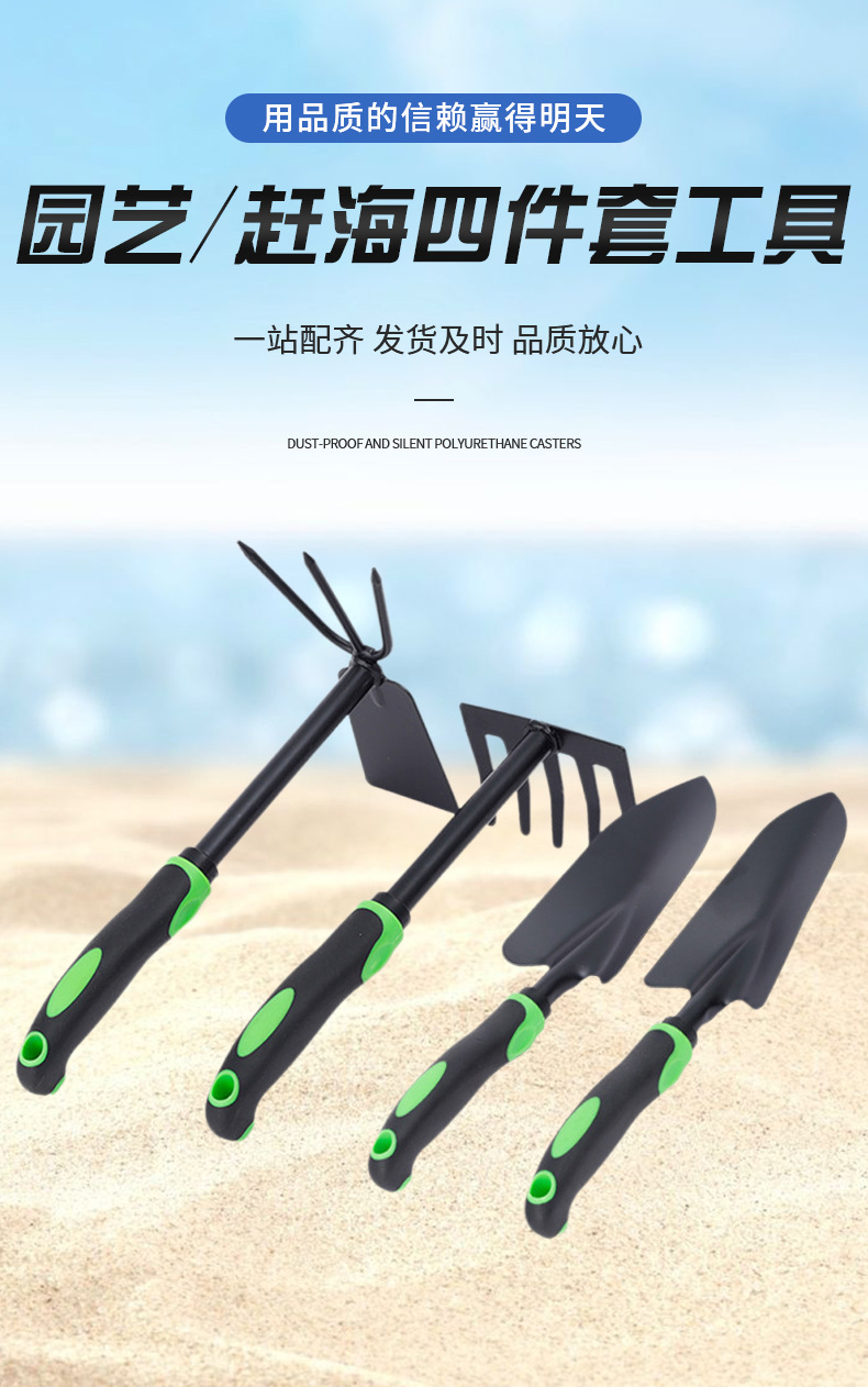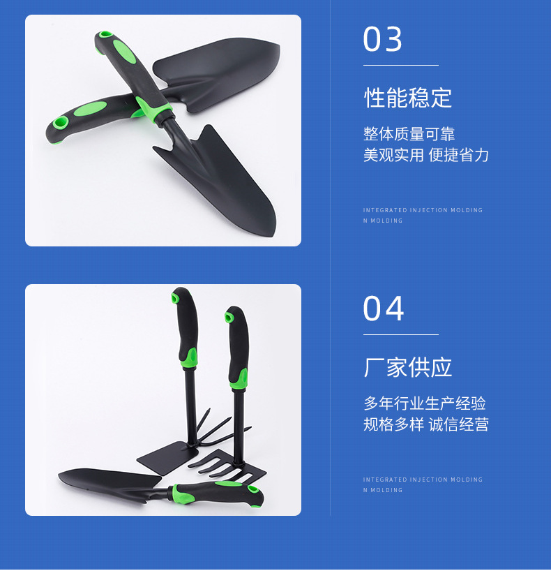 工場卸売の黒いゴム製園芸4点セット、鉢植えの花の植え付け用シャベル、土ほぐし鉄製熊手、海釣り道具、海釣り必需品