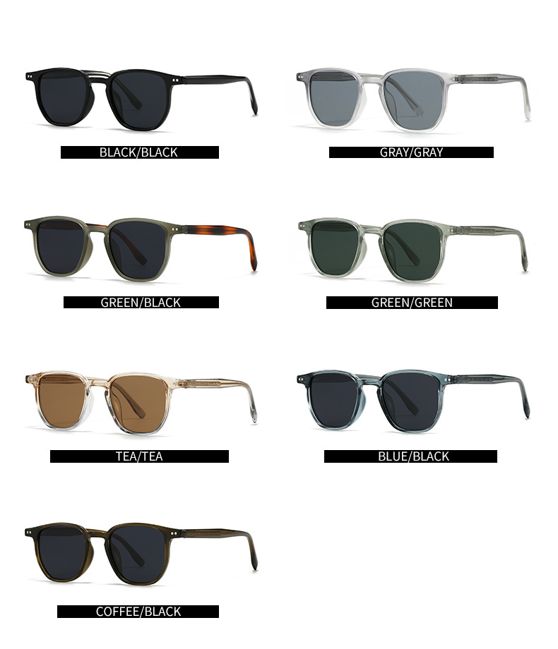 C1 ブラック ブラック グレー,C2 上部グレー、下部透明ライトグレー,C3 グリーンフレーム ブラックグレーおから足,C4透明グリーンフレームグリーンフィルム,C5 上茶と下灰茶タブレット,C6 ブルーフレーム ブラックグレー,C7 オリーブグリーン ブラックグレー