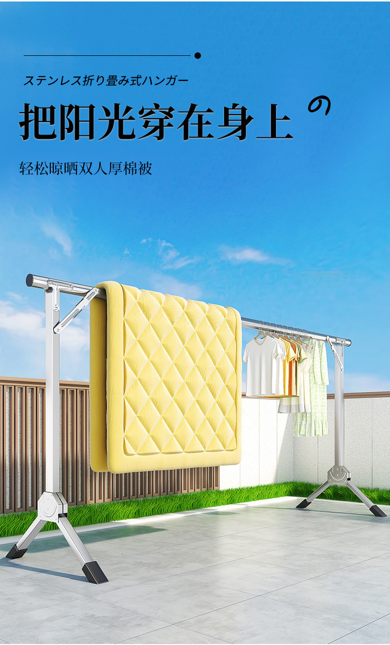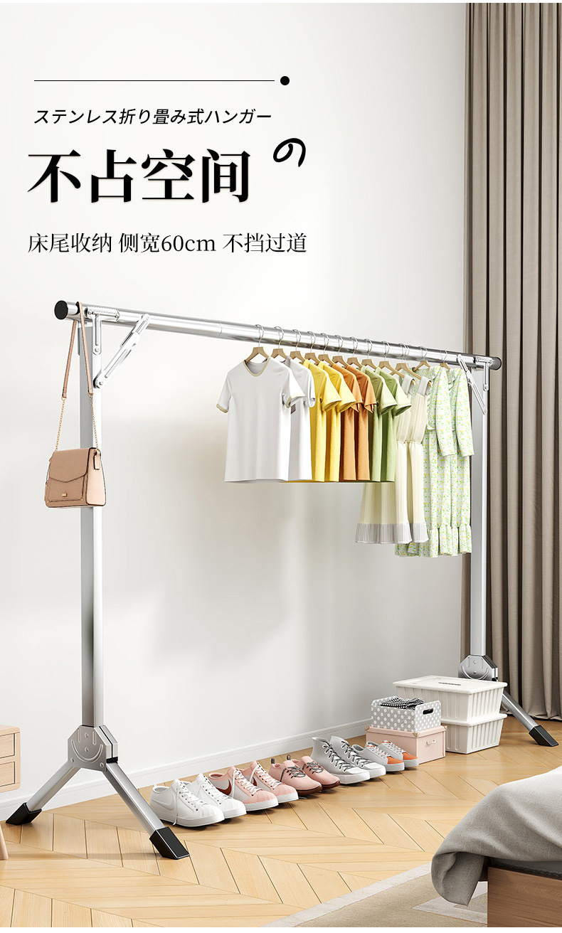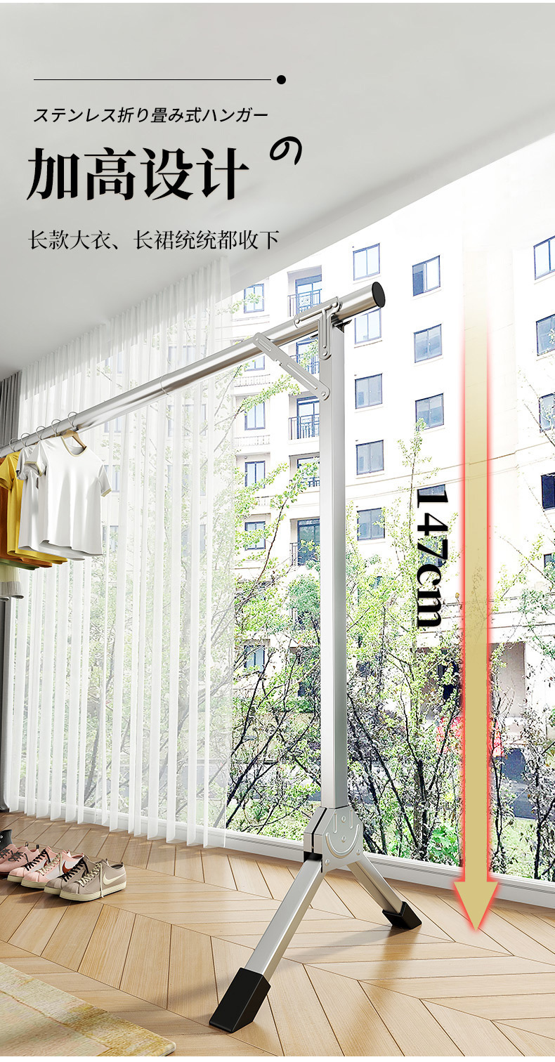バルコニー用シングルロッド衣類乾燥ラック、衣類乾燥ラック、折りたたみ式衣類乾燥ラック、ステンレス製垂直家庭用伸縮式