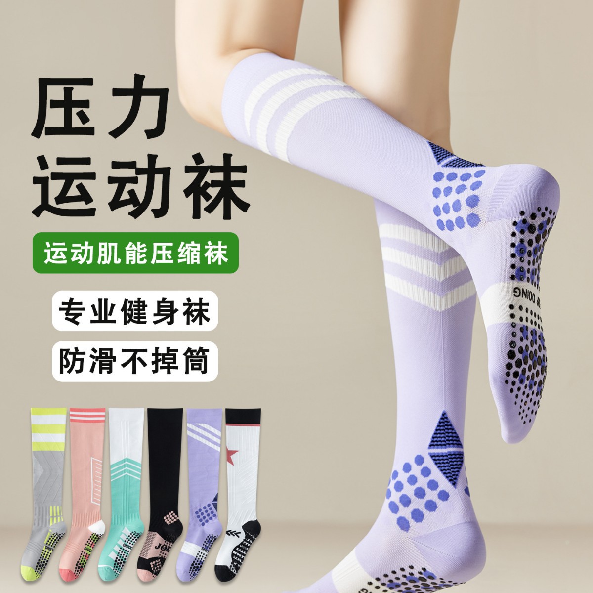 专业运动压力小腿袜子女肌能压缩无骨防臭跑步瑜伽跳绳骑行长筒袜
