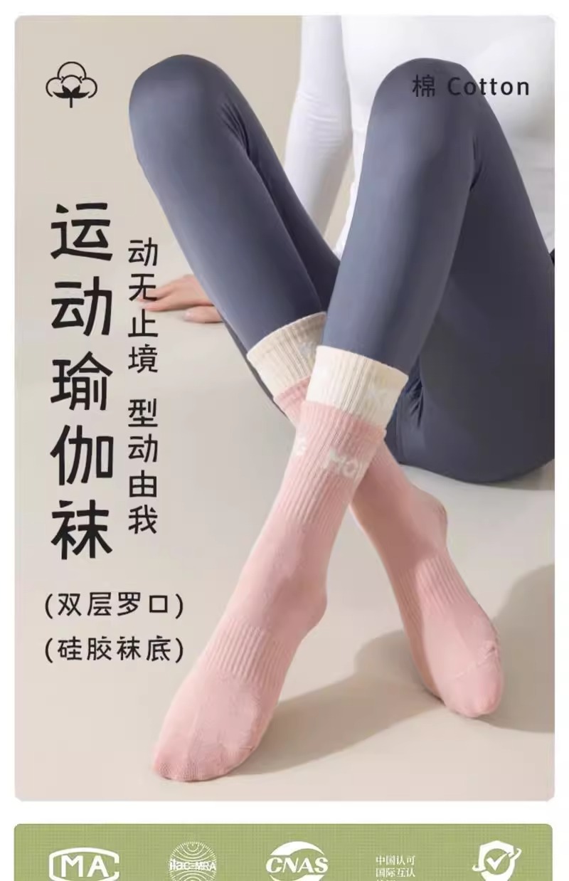 瑜伽袜子女防滑专业女中筒普拉提袜室内运动地板袜四季通用瑜伽袜
