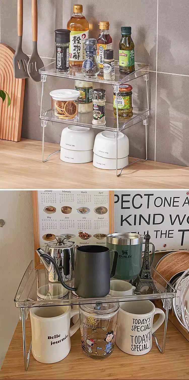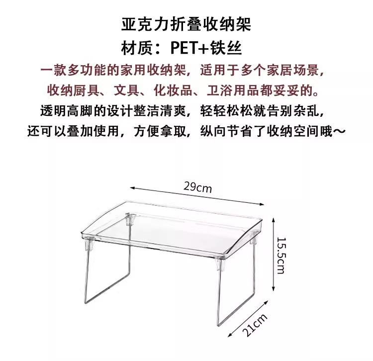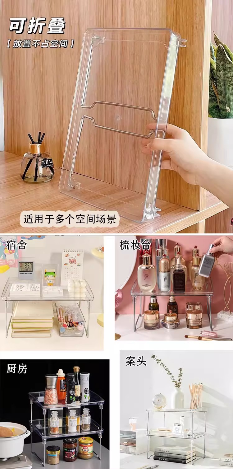 可折叠置物架ins风透明台面化妆品收纳架办公桌面收纳厨房置物架