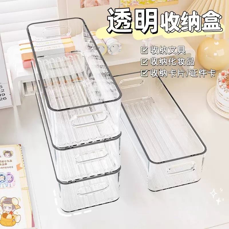 桌面收纳盒长条窄长型长方形亚克力透明杂物文具袜子夹缝盒小物件