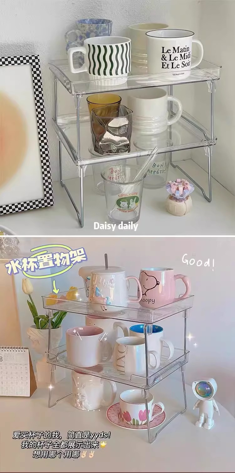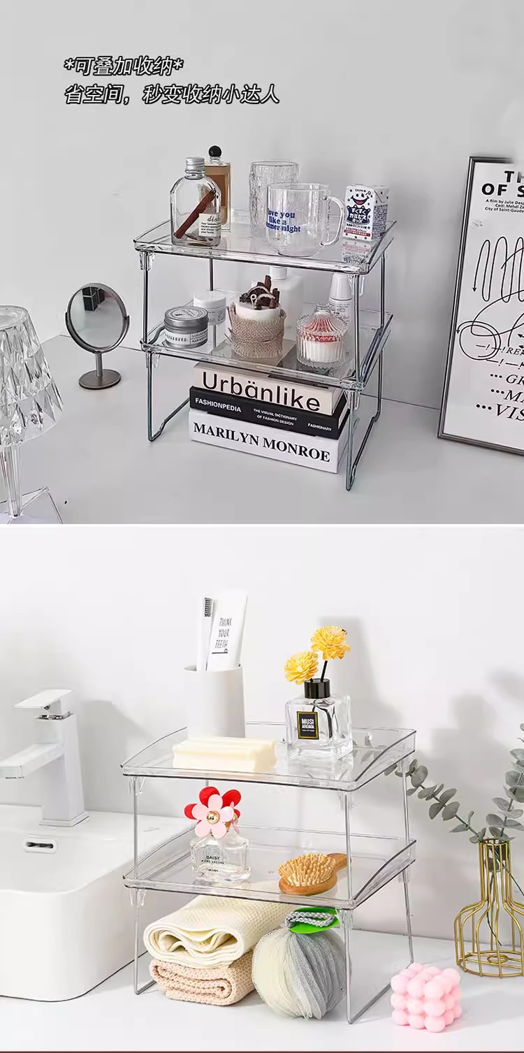 桌面置物架透明可叠加折叠宿舍简约多功能文具化妆品多层收纳架子