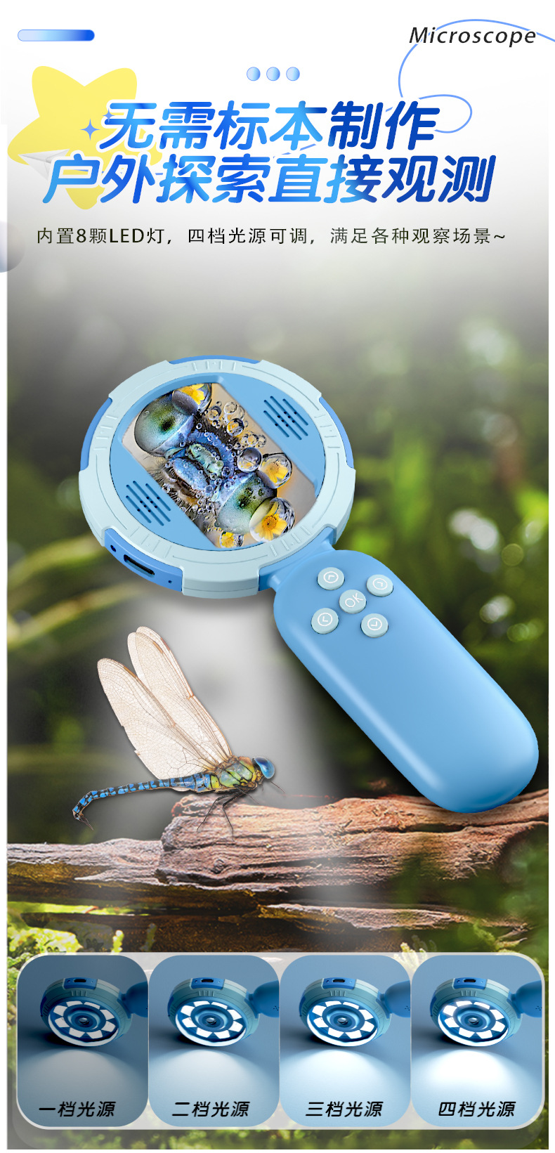 新品HM020B子供手持ちポータブルデジタルルーペ科学実験玩具科教電子顕微鏡