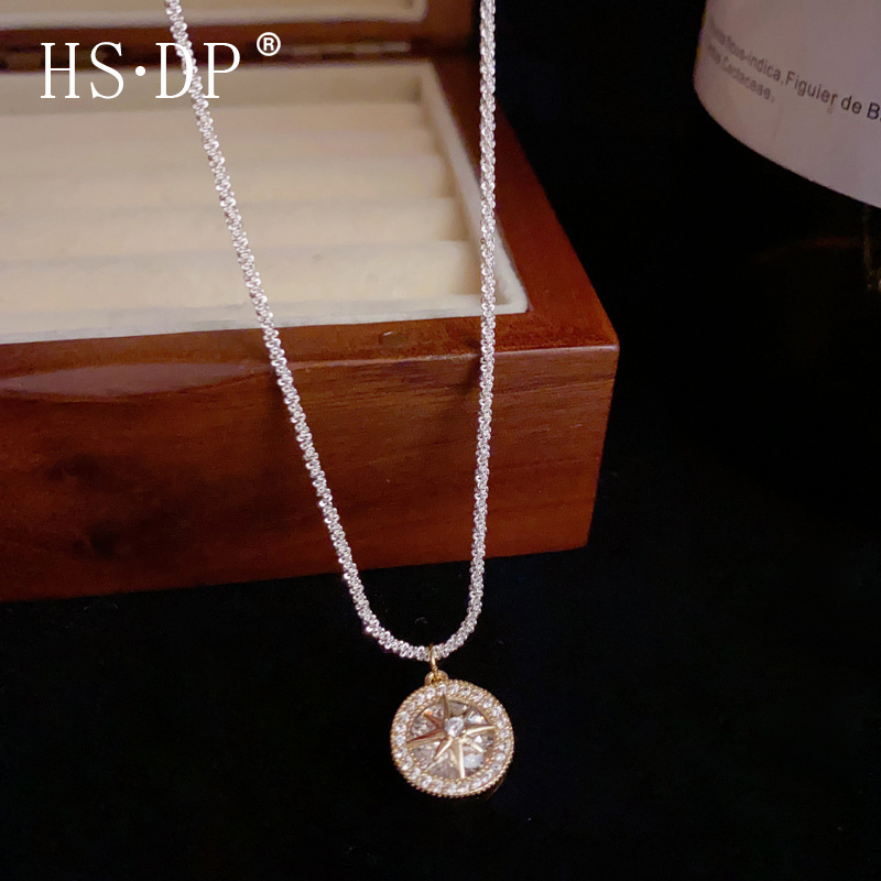 小众时尚轻奢百搭镶钻珍珠罗盘吊坠项链个性独特设计感锁骨链批发