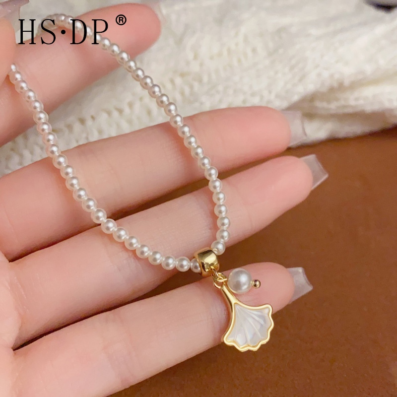フランスファッション優しいデザイン感貝母イチョウ葉ペンダント真珠ネックレス小衆軽贅沢高級ネックチェーン卸売り