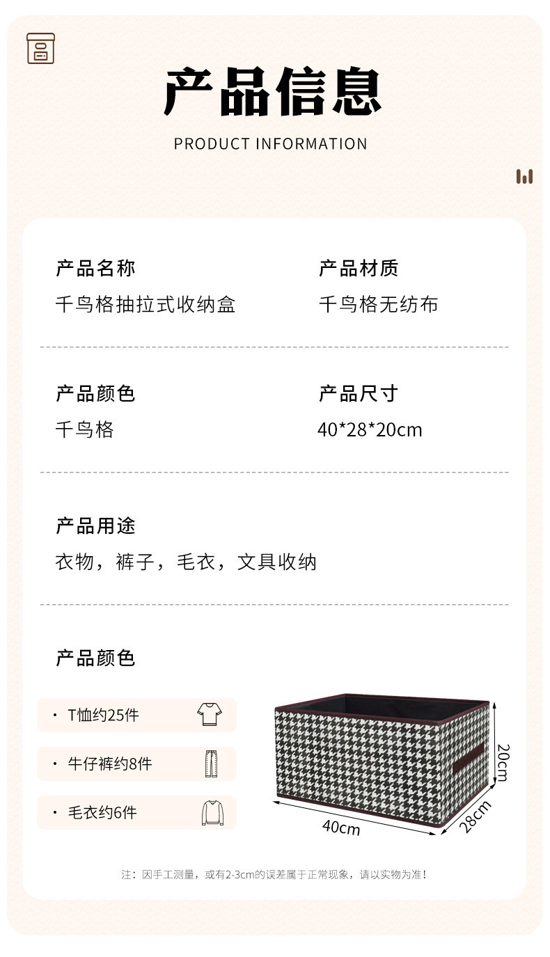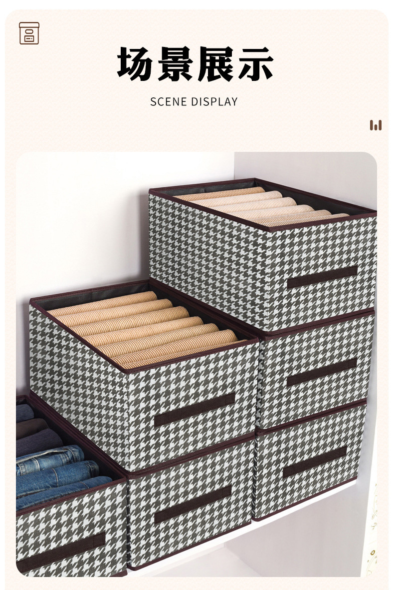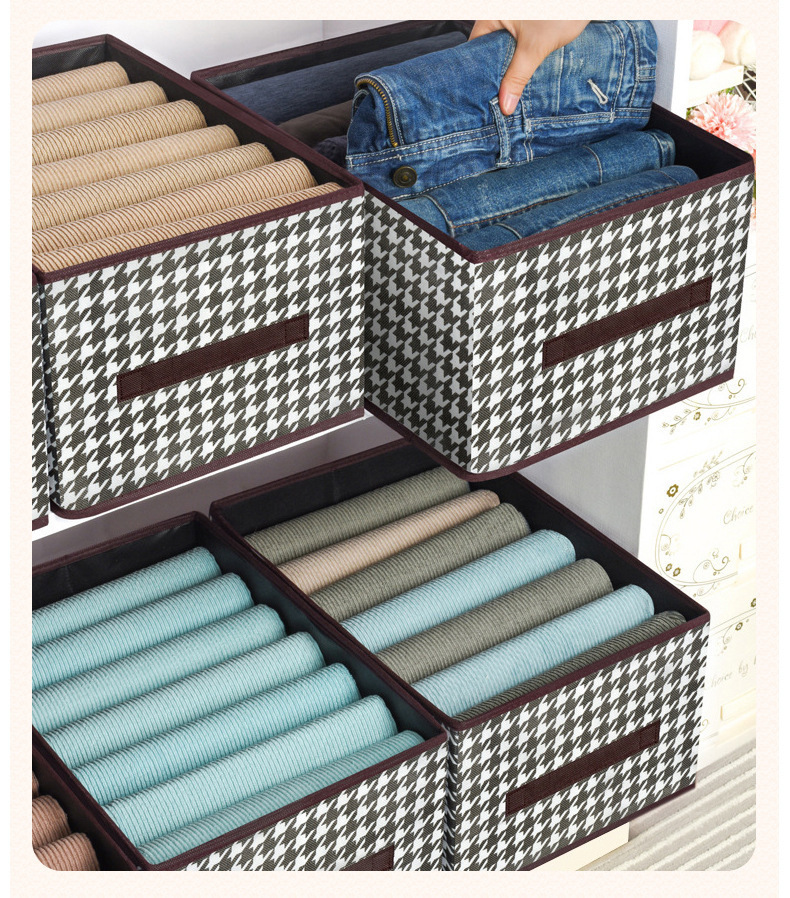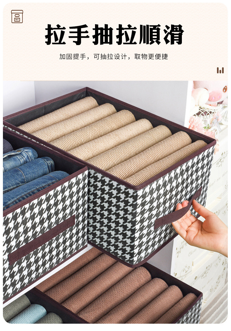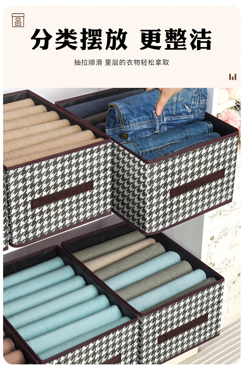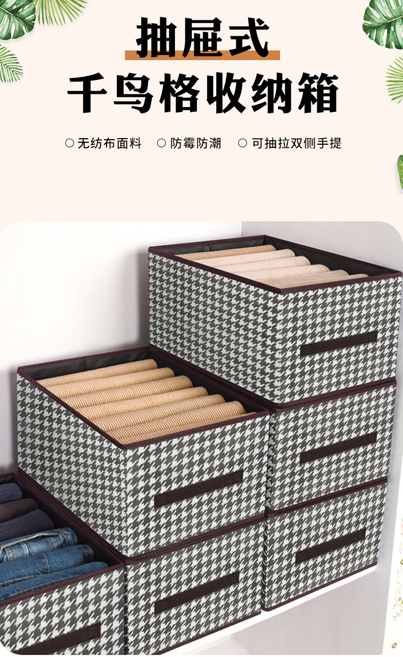 千鳥格布芸収納ケース耐磨耗家庭用タンス衣類ズボン整理防塵折りたたみ収納ボックス引き出し式