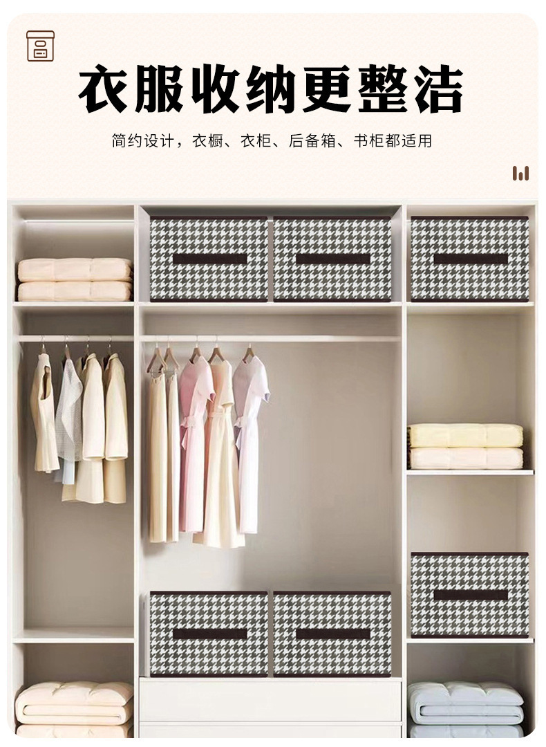千鸟格收纳箱装衣服家居衣柜裤子整理箱布艺可折叠大容量储物家用