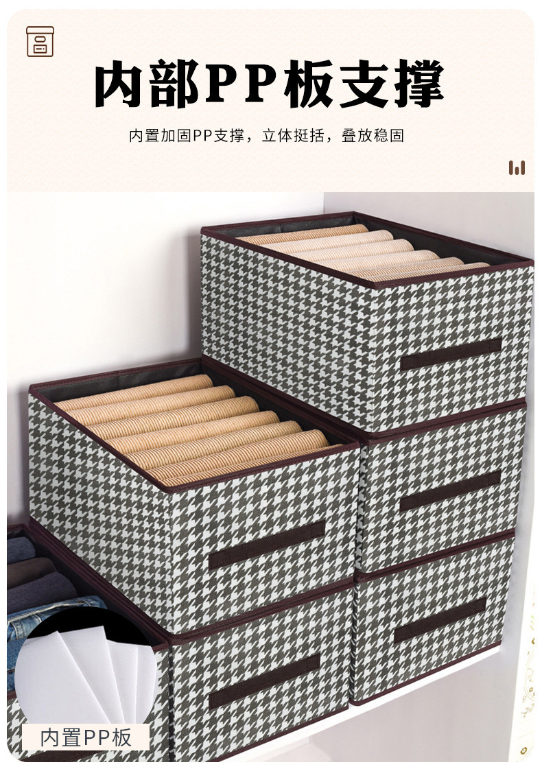 千鳥格ズボン収納袋家庭用服pp板収納籠引き出し式折りたたみ収納ボックス収納神器