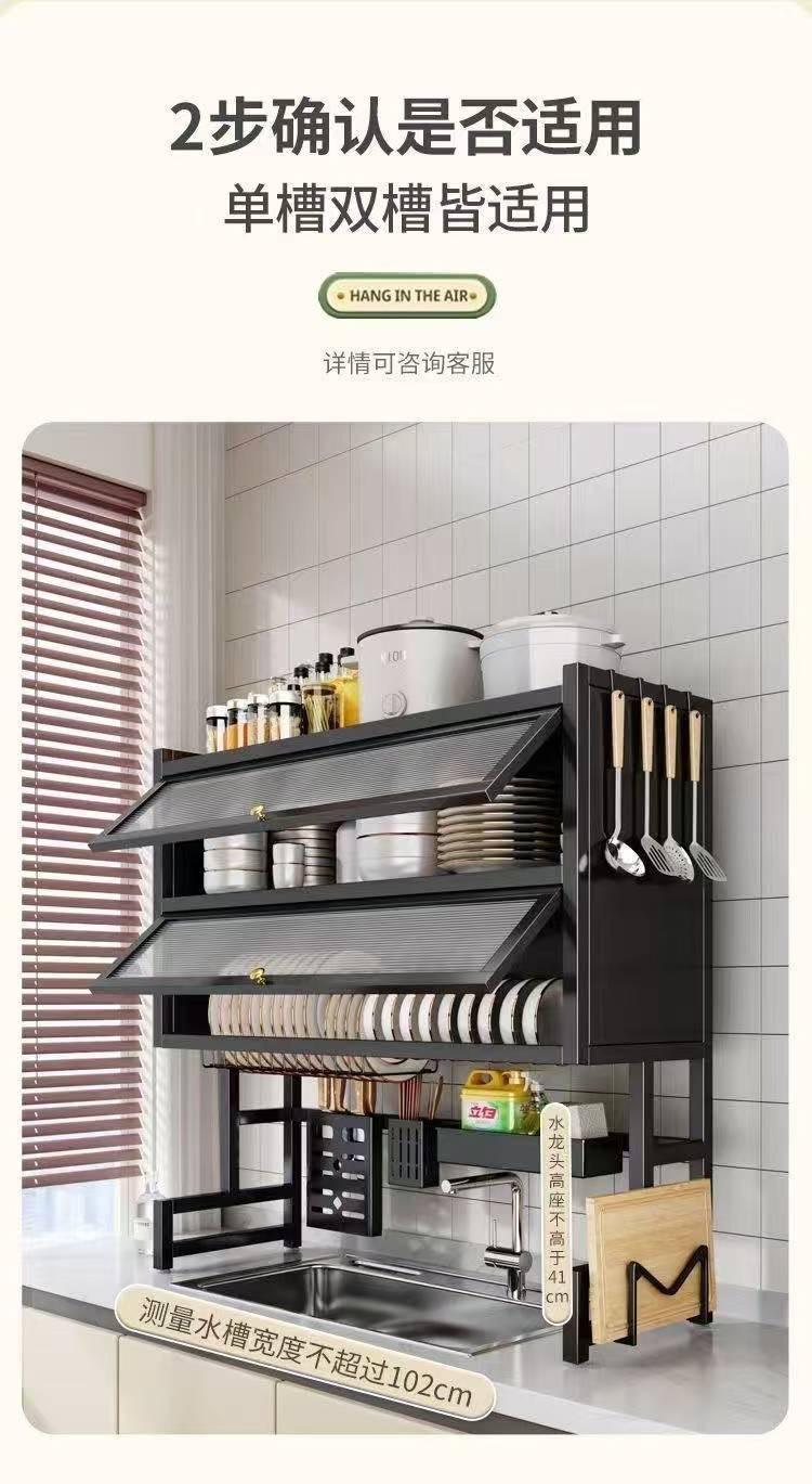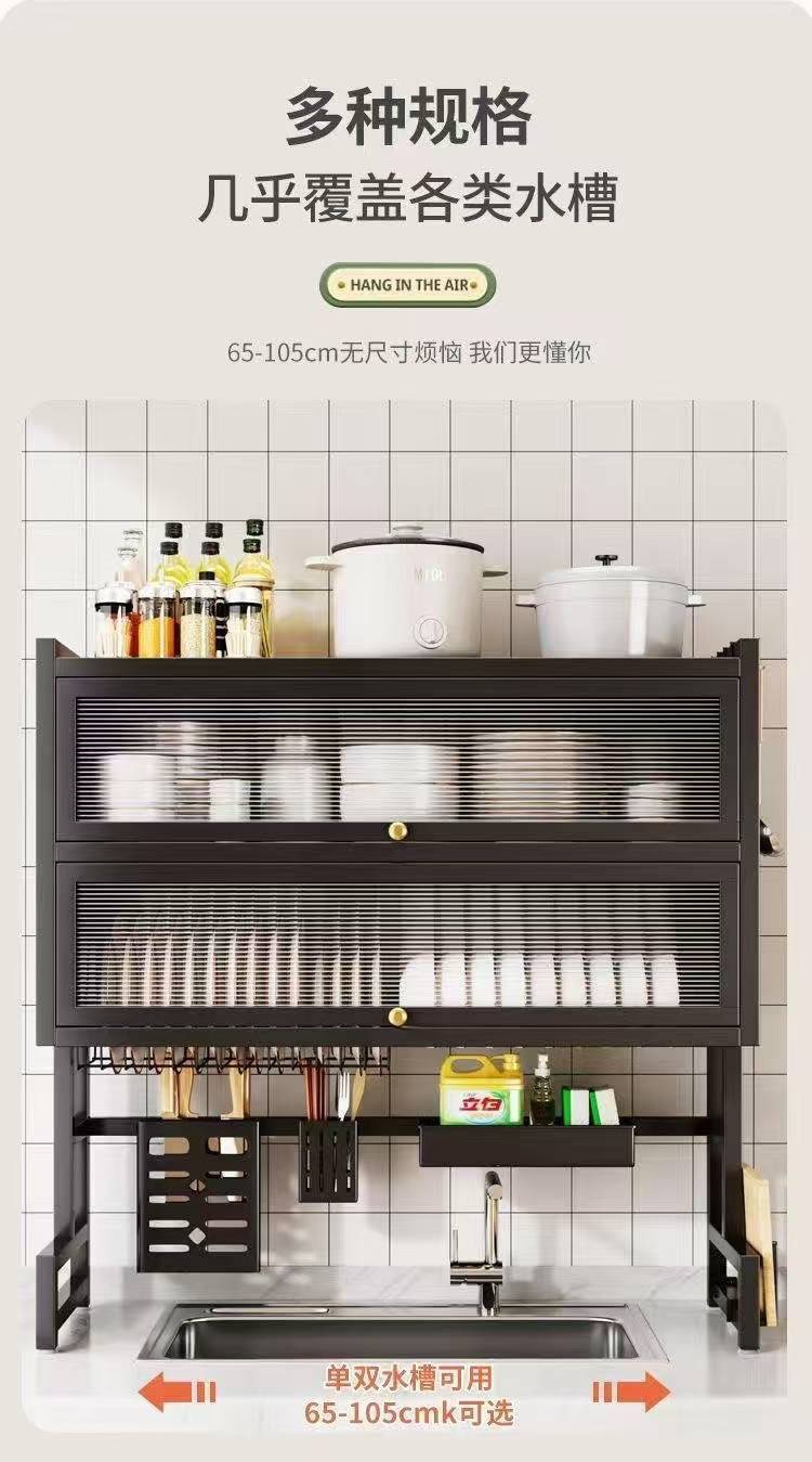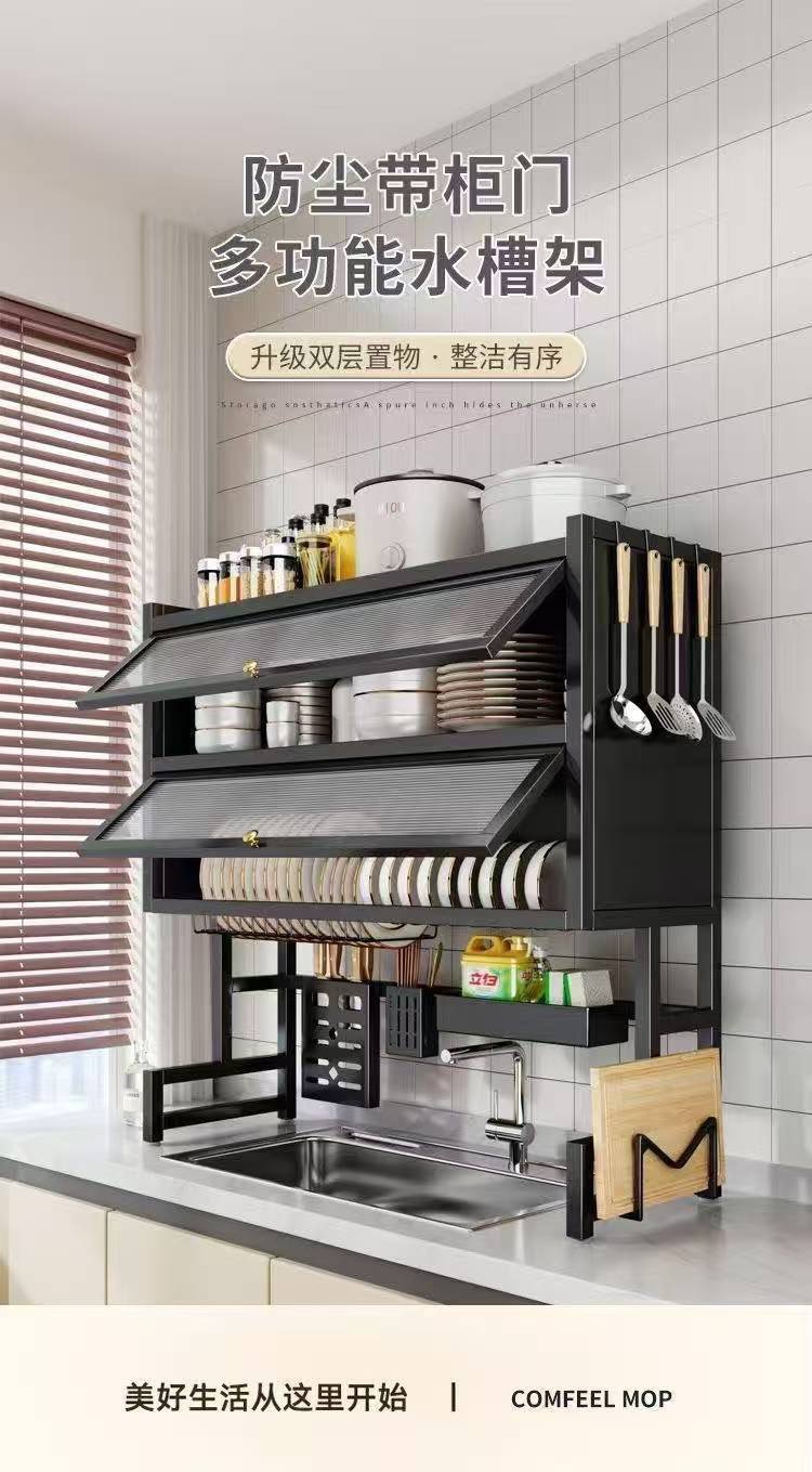 二重キッチン水槽の物置棚家庭用食器皿多機能収納棚池の床面にドア付き防塵排水棚