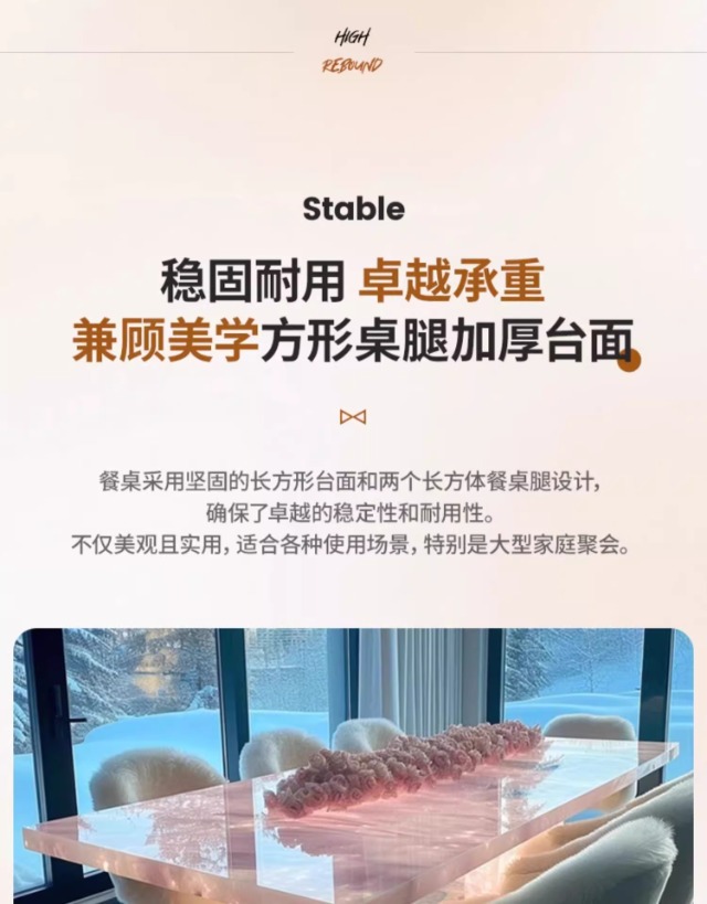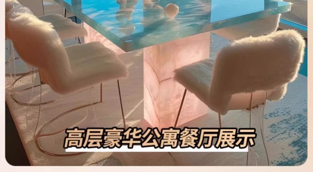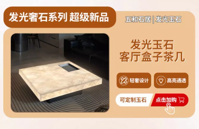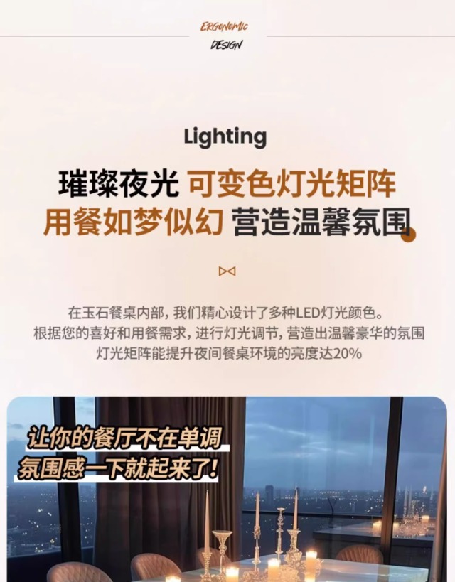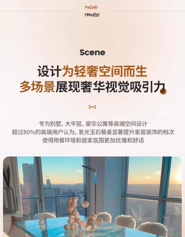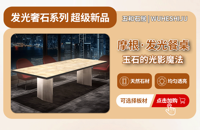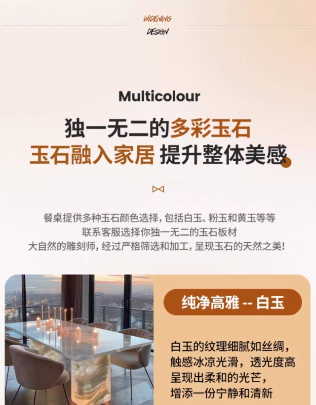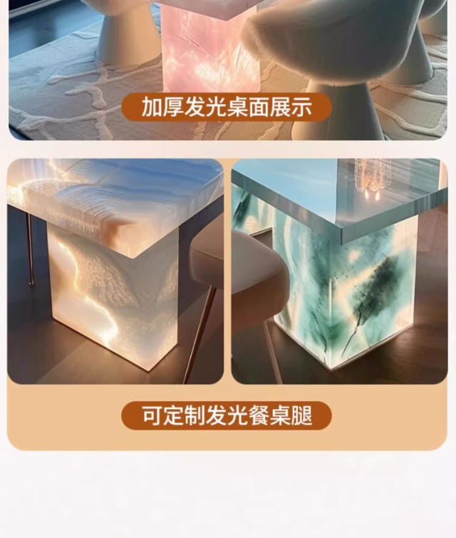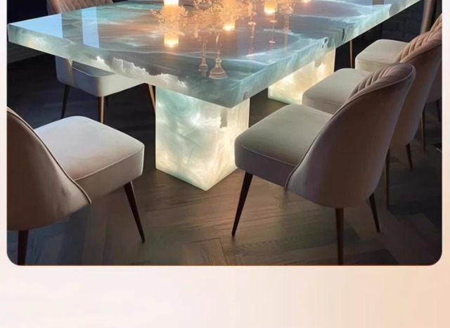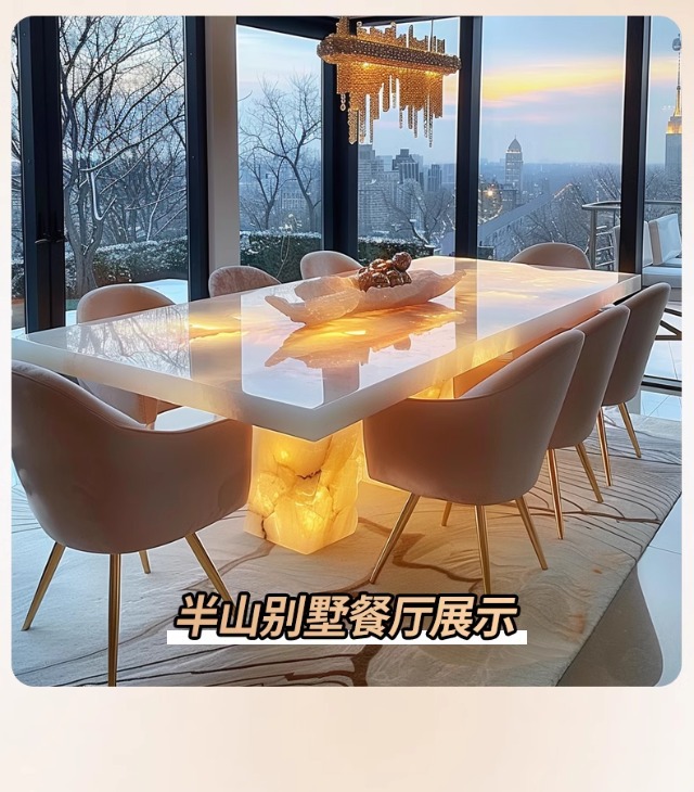 发光玉石餐桌天然奢石长方形粉色岛台白玉轻奢大理石饭桌轻奢