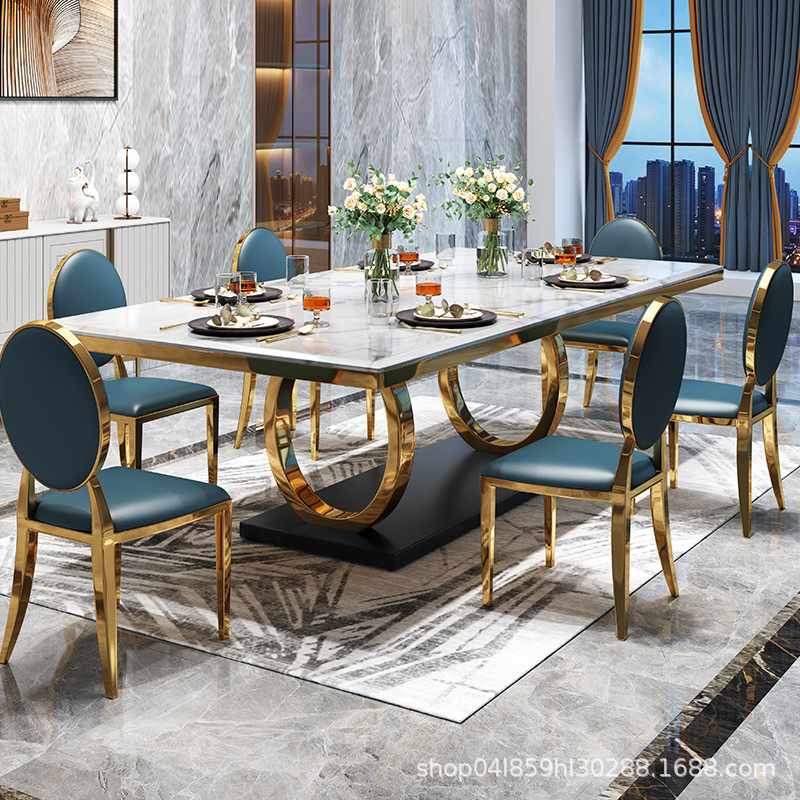 大理石のダイニングテーブル家庭用高級石シンプルモダンな長方形ライト高級ダイニングテーブル北欧クラブスレートダイニングテーブルと椅子