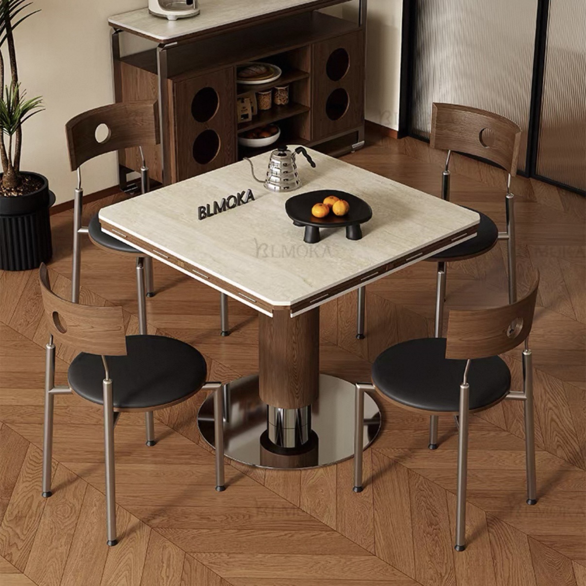 正方形折りたたみ岩板ダイニングテーブル、無垢材岩板、円形家庭用伸縮式、円形と正方形両用の円形テーブル、食卓