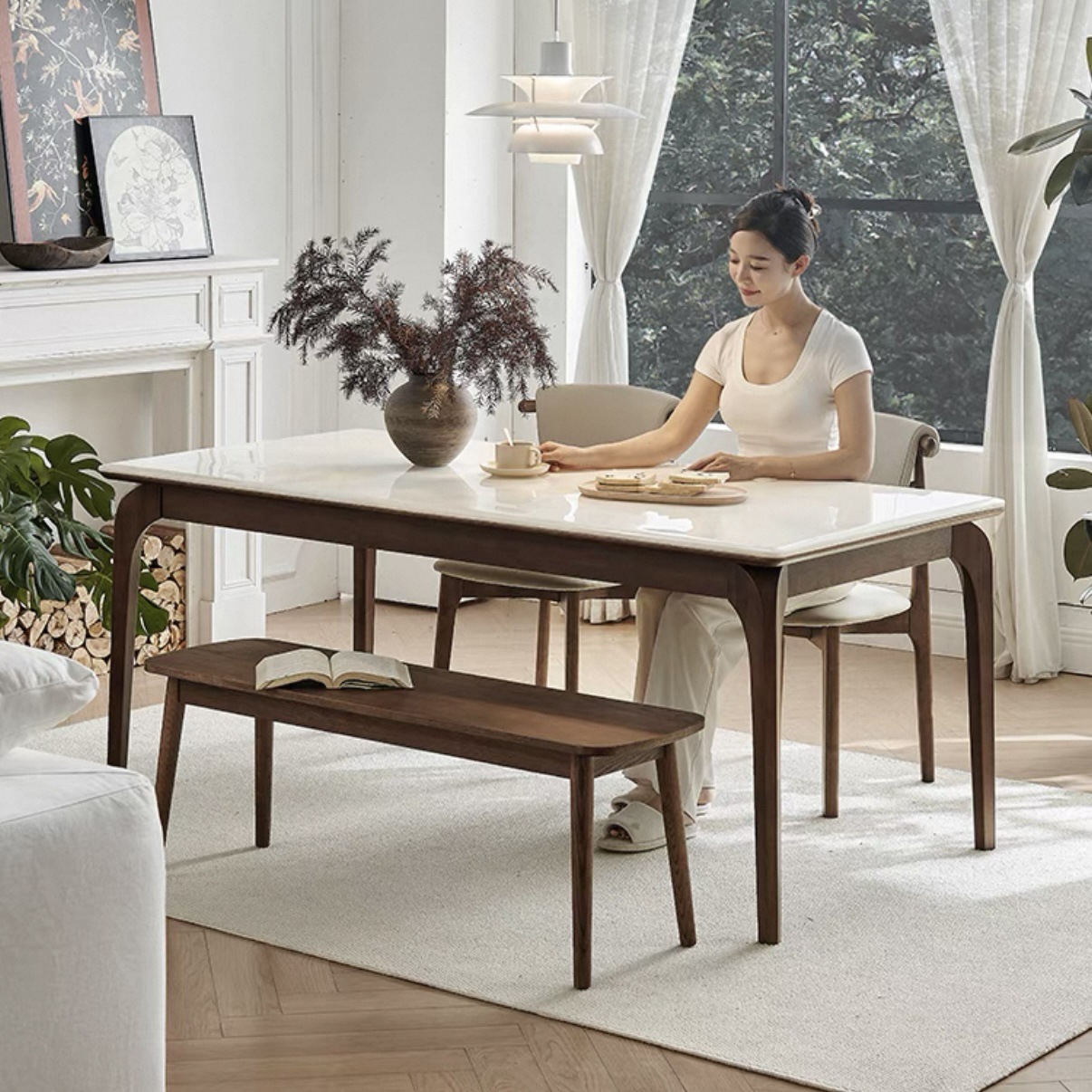 北欧産天然大理石と無垢材のダイニングテーブル、家庭用小型長方形ダイニングテーブルセット、大理石ダイニングテーブル