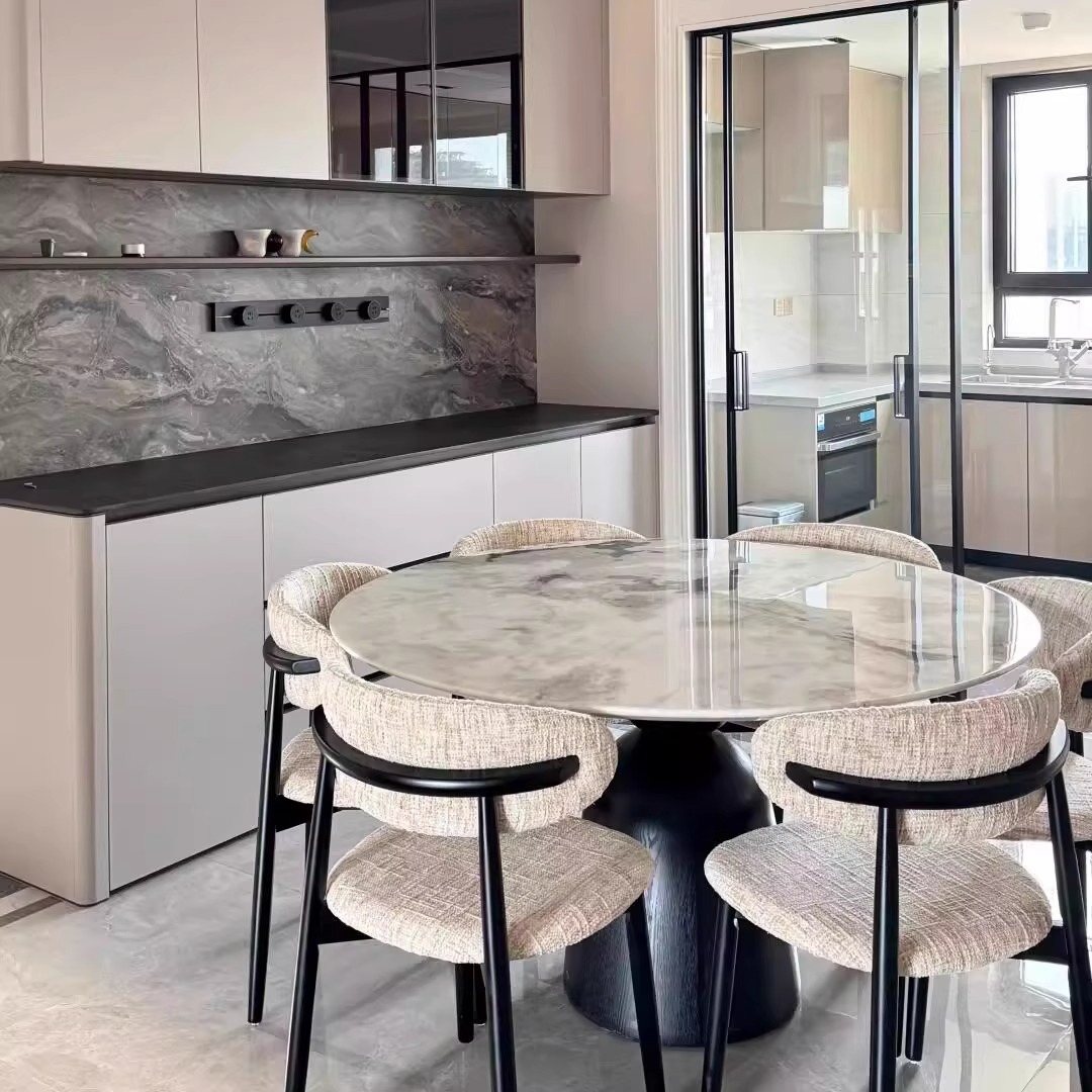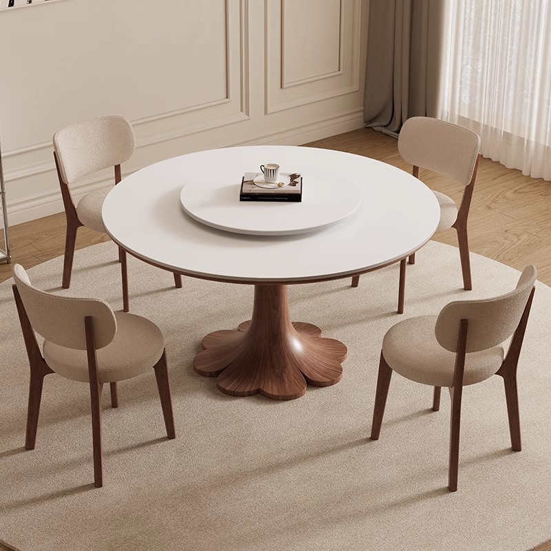 デリフォン無垢材岩板ダイニングテーブル、丸テーブル、家庭用、中世風、小規模住宅向け、円形食卓、回転式デザイン