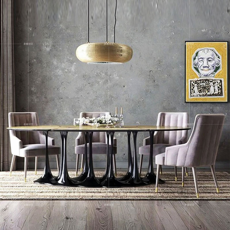 意大利玻璃餐桌轻奢高级感豪华别墅高端家用设计感艺术不锈钢饭桌